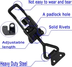 Heavy Duty Latch-Style Toggle Clamps: The adjustable toggle latch made of cold rolled carbon steel with black coated, heavy duty construction and rust-resistant; 1320lbs holding capacity, stronger than normal 4003 style latch clamp Adjustable Latch Buckle: The pull latch clamp is designed with an adjustable lever handle that has a locking range of 5-7/8 to 6-1/2inches; easy to install, just twist the tension hook for maximum sealing effect Comfortable Grip with Plastic Cover: The metal quick draw latch has the plastic handle cover for quick and comfortable operation; the oil and stain resistant handle is very suitable for indoor and outdoor use, especially for smoker door Unique Lever Handle Toggle Catch Latch: Package includes 4pcs 4003 style Heavy Duty toggle latch, highly durable construction and hardened steel pivot points for durability and versatility; mount the draw arm over a latch plate and pull the handle to clamp Wide Applications: Toggle latches and pull clamps have a knee joint and operate as a knee lever, which close items such as tension devices, opening stops and various parts; metal toggle latches have a wide variety of uses and are quick locking tool for smoker lid, tool boxes, trailer tailgates, cabinet door, truck, jig, flight case and so on 4Pack Heavy Duty Adjustable Toggle Clamp, 1320lbs Holding Capacity 4003 Style Toggle Latch, Metal Draw Latch Quick Pull Action Latch for Smoker Lid Door Box Case Trunk Jig Tool Box -Package: 4 Pack Latch-Style Toggle Clamps with Latch Hooks - Color: Black Coated - Material: Heavy Duty Steel - Holding Capacity: 1320lbs -Overall Length: 6-1/2” - Adjustable Gripping Range: 5-7/8 to 6-1/2inches - Heavy Duty Toggle Draw Latches, widely used for quickly locking tool boxes, smoker lid, cabinet door, making jig, and tensioning two parts -Made of highly durable steel with black coated, 1320lbs holding capacity, longer service life and good corrosion resistance -Side mount hold-down toggle clamp, used on machine operation, welding, jigging and repairing -Easy to install; Mount the latch clamp with the #8 screws, fit the draw arm over a latch plate and pull the handle to clamp -Adjustable Draw with Triangle Latch Head; designed with the screwed catch for adjusting the length of the arm; Once installed, you can adjust the closing force to ensure the latch stays securely fastened. Much better than old fashioned latches