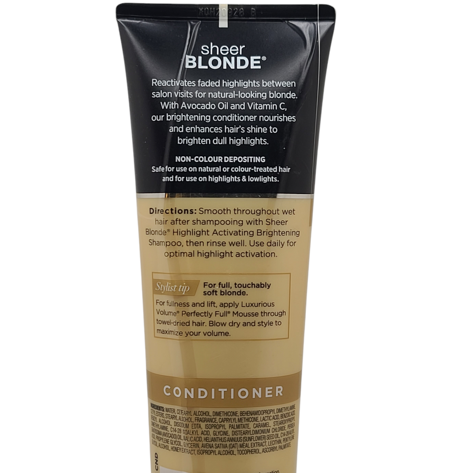 KleverKosmetics Our eBay Store About Us Contact Us Add to Favorite Sellers 4 Pack, John Frieda Sheer Blonde Highlight Activating Brightening Conditioner 8. 4 Pack!! John Frieda's Sheer Blonde Highlight Activating Brightening Conditioner 8.45 oz is specifically formulated to enhance and brighten blonde hair, whether natural or color-treated. Infused with sunflower and white tea, this conditioner nourishes and improves the texture of each strand, leaving hair healthier, shinier, and more luminous. It effectively removes dull build-up, revealing natural-looking blonde with a full spectrum of tones. 4 Pack!! Enhances Blonde Highlights: Formulated to enhance natural or color-treated highlights, boosting brightness and vibrancy. Nourishing Ingredients: Enriched with sunflower and white tea to nourish and improve hair texture, promoting softness and shine. Moisturizing Formula: Hydrates and softens hair, leaving it smooth and manageable. Safe for Color-Treated Hair: Suitable for both natural and color-treated blonde hair, preserving color vibrancy. Free from Harsh Chemicals: Formulated without parabens, phthalates, ammonia, and silicones, ensuring safe use for color-treated hair. Return and Refund Information • Please be aware that colors on the screen may appear slightly different in person. • Please be familiar with product. Feel free to contact us if you have any questions. • DUE TO HEALTH AND SANITARY ISSUES CONCERNING COSMETICS OR SKINCARE WE DO NOT ACCEPT RETURNS ON THESE ITEMS. ALL SALES ARE FINAL. • WE WILL ONLY ACCEPT RETURNS WHEN THE ERROR IS ON OUR END. • Attention VeRO members: We're not affiliated with or endorsed by the companies mentioned in this listing. All trademarks and copyrights are acknowledged, they are only used for informative description of the items offered for sale. Warranty information We are not an authorized dealer of this product and any warranty included with the product may not be honored by the manufacturer.