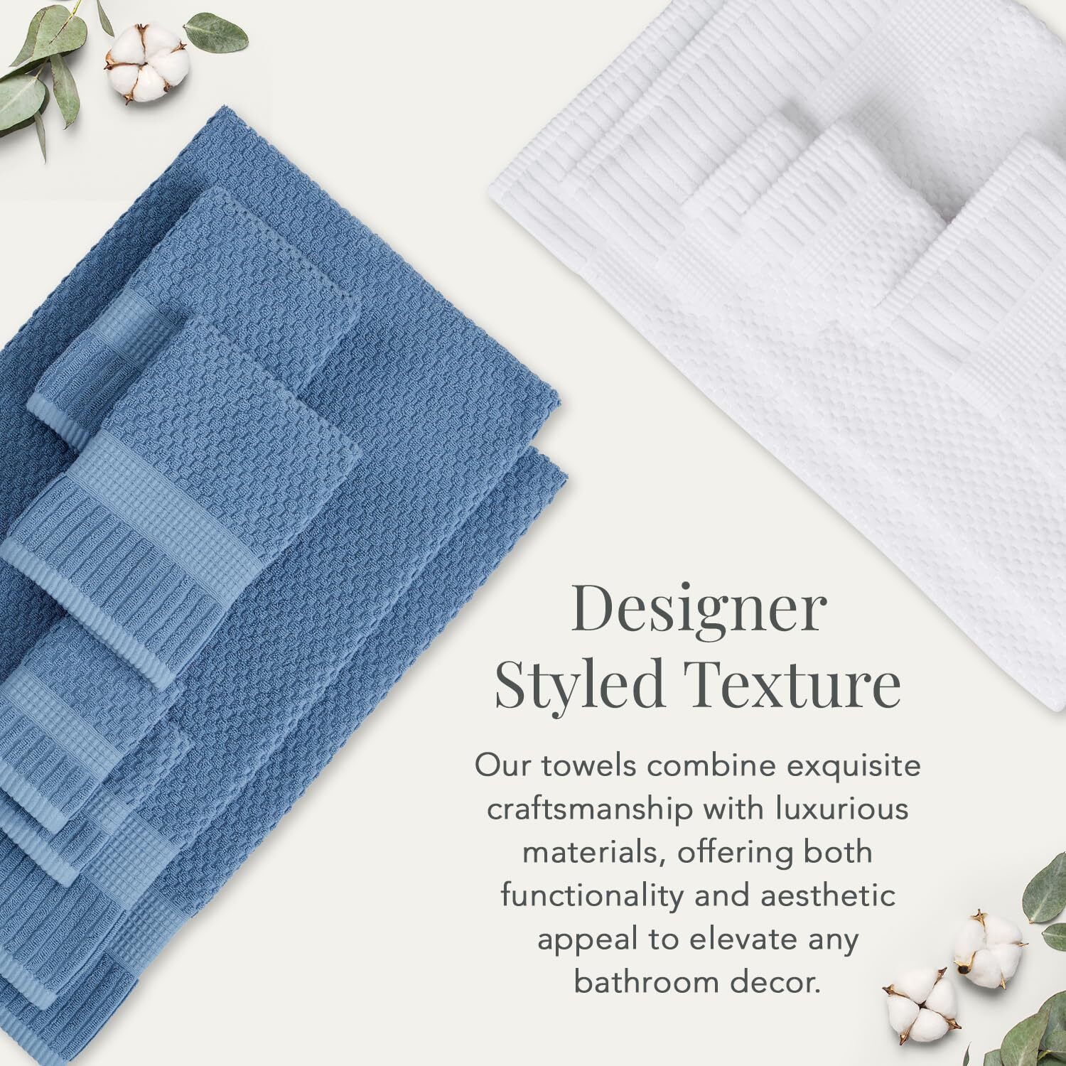 These towels are a game-changer! Super soft, ultra-absorbent, and quick-drying—perfect for daily use. The 600 GSM cotton feels luxurious against the skin, and I love that they're OEKO-TEX certified, so no harsh chemicals. They hold up well after multiple washes and stay fluffy. The bright white color looks crisp and clean in any bathroom. Great value for a 4-pack!
