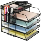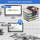 [STACKABLE DESIGN WITH MULTIPLE COMPARTMENTS] Neudeco's 4-pack desk file document letter tray comes with a stackable design that includes 4 trays, 1 drawer organizer holder, and 1 pen holder to help you stay organized and efficient. The stackable design maximizes desk space while providing ample storage for documents and office supplies. [EASY TO ASSEMBLE AND DURABLE] The screw-free installation design makes it quick and easy to put together. Made from lightweight yet durable mesh metal, this desk organizer is built to withstand daily use without adding extra weight to your desk [VERSATILE OFFICE ORGANIZER] This desk file document letter tray with drawer organizer holder and pen holder is ideal for office paper organization and storage, suitable for use in the office, home, and school. It also comes with a business card holder and pen holder, making it a great value for your money. [CONVENIENT DIMENSIONS] The desktop file dimensions are 11"W x 13.9"D x 10.4"H (Single 2.6"H), the drawer organizer dimensions are 9.8”W x 8.9”D x 1.3”H, and the pen holder dimensions are 4.96”W x 1.57”D x 4.25”H. These convenient dimensions ensure that this desk organizer is perfect for desk organization, desktop storage, and office accessories for both women and men. [KEEP YOUR DESK CLUTTER-FREE] Neudeco's desk file document letter tray with drawer organizer holder and pen holder is designed to keep your desk clutter-free. It provides ample storage for all your office supplies, including documents, pens, business cards, and more. Stay organized and efficient with this versatile desk organizer.
