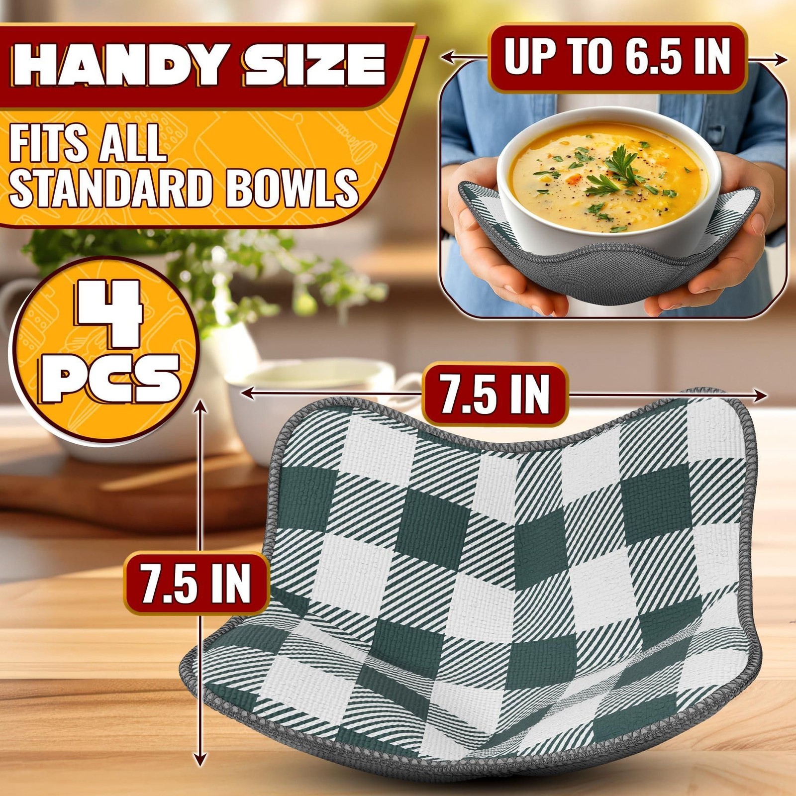 4 Pcs Microwave Bowl Cozy Holders Gray & White Checkered Heat Resistant Microwave Bowl Holders for Hot Food Protect Hands from Hot Dishes Soft Fabric for Safe & Convenient Use in the Kitchen