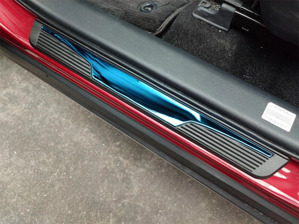 4Pcs Blue Door Scuff Sill Cover Panel Step Protector for Ford F-250 Accessories Product Description: Auto Door Sill Plate Protectors Blue Mirror surfacestainless steel Front/Rear Door Sill Scuff Plate Guard, Welcome Pedal Protector CoverVehicle Fitment Fit for All Ford F-250 Models Blue Mirror surface stainless steel Trims About the product: Color: Blue Mirror surface Fitment Type: Direct Replacement Material: High quality stainless steel+ABS Product Size Long : 18.5''(L) x 1.9'' (W) Product Size Short : 10.6''(L) x 1.9''(W) Package Size: 20in*2in/50.8cm*5.08cm - Product Condition: 100% brand new, never used before, you can buy with confidence. - Decorate car appearances, make your car particular and unique. - High-grade anti-scrape rubber with a matt surface, is soft and strong. - Cover existing scratches and prevents your car from wear and tear, scratches paint scratches, and so on.Include: 4X door sill protector guardsNote: -Please allow slight measuring deviation due to manual measurement. Features: High-Quality Material - This item is made of high-quality silicone polymer material, heat /cold resistance, abrasion resistance, anti-aging, and waterproof. Multi-Function - Anti-Slip DESIGN of these Mirror stainless steel+ABS guards, groove design and non-slip function, can effectively protect car door sill plate, it prevents nasty scratches and provides protection. Also, it can be used to cover any existing scratches, or paint damage. Easy To Install - This scratch-resistant rubber door sill guard is very durable, flexible, bendable (will not crack or break), has strong adhesive tape on the back, just stick on the sill, easy to install. Package Include - 2Pcs Front Car Door Sill Sticker ( 1 Pair ) 2Pcs Rear Car Door Sill Stick er ( 1 Pair ). 100% Satisfaction - Good quality material, keep driving safe! Please feel free to contact us if any questions!Method of installation: 1. Find the correct install position, before removing the tape protective film on the products. 2. Clean the surface of the installation position to ensure that it`s clean and no oil, grease and wax, and so on. 3. Pace the item in the exact position carefully, Paste the trim, and press it to ensure good adhesion. Repeated pressure for better adhesion. 4. Pease does not wash your car within 24 hours, so it can be the best bond strength. 5. Please heat the adhesive tape under the item to Increase the stickiness if you have a hot hair dryer. (affected by tempe rature)