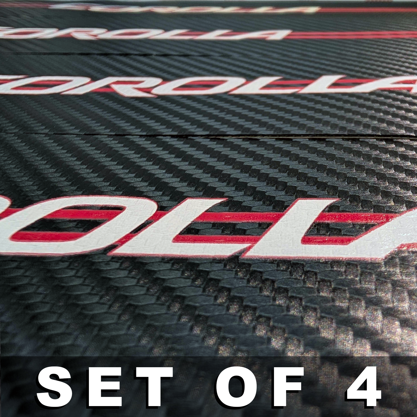 Features: Protects: Scratch-proof, waterproof, non-slip. Looks: 3D carbon fiber + logo, bold and sleek. Flexible: Cut to fit your car. Easy: Peel, stick, no damage. Specs: Type: Door Sill Sticker Color: Carbon Fiber (not real) Sizes: 23.6" x 2.7" or 15.7" x 2.7" Material: 3D Vinyl Adhesive: Self-stick Includes: 4 Stickers