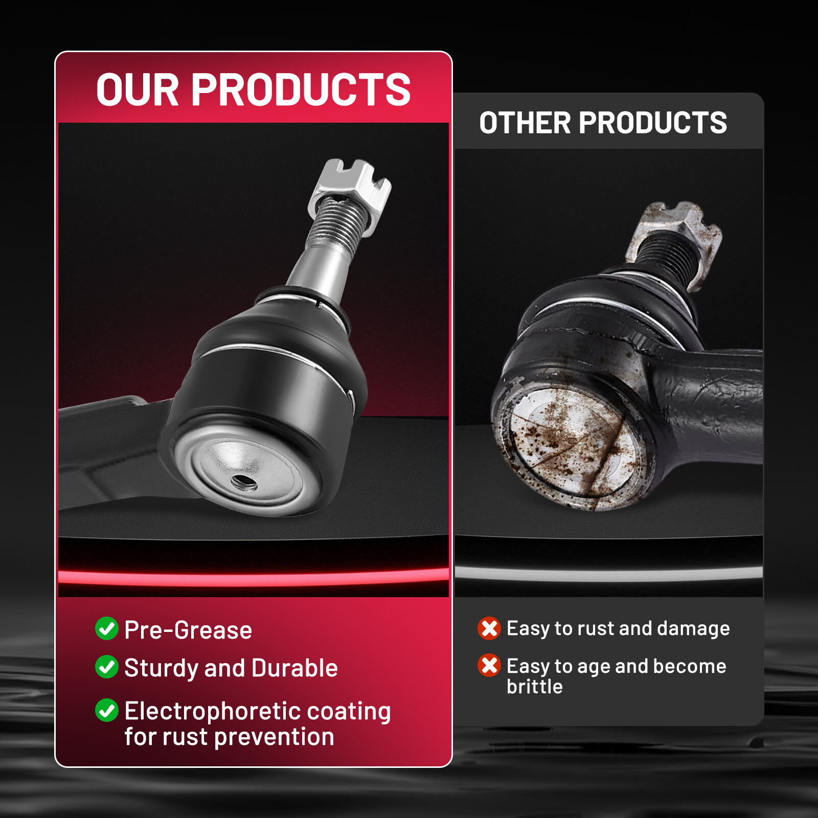 Specification: Color: Black Material: Metal Front Outer Tie Rod End OE Number: ES800955 (Driver Side) Front Inner Tie Rod End OE Number: ES800954 (Passenger Side) Front Inner Tie Rod End OE Number: EV800898 Placement On Vehicle: Front Inner, Front Outer Thread Size: M16 x 1.5, M10 x 1.5, M14 x 1.5 Mounting Hole Diameter: 15mm / 0.59" Front Outer Tie Rod End Dimension: 14x8.1cm / 5.51"x3.19"(L*W) Front Inner Outer Tie Rod End Dimension: 31x3.7cm / 12.20"x1.46"(L*D) Fitment: For 2013 - 2018 FORD C-MAX All Models For 2013 - 2018 FORD ESCAPE All Models For 2014 - 2018 FORD TRANSIT CONNECT All Models For 2012 - 2018 FORD FOCUS All Models Package Included: 2 x EV800898 Front Inner Tie Rod End 1 x ES800955 Front Outer Tie Rod End (Driver Side) 1 x ES800954 Front Inner Tie Rod End (Passenger Si Feature: Front Inner and Outer Tie Rod Ends are made of fine material for long lasting dependability and durability under conditions. Resist abrasion and environment corrosion. Restores like new steering and handling. Durable surface treatment for anti rust. Please make sure that the suspension parts are suitable for your vehicle before ordering. This is a non-OEM product, accessory only! Specification: Color: Black Material: Metal Front Outer Tie Rod End OE Number: ES800955 (Driver Side) Front Inner Tie Rod End OE Number: ES800954 (Passenger Side) Front Inner Tie Rod End OE Number: EV800898 Placement On Vehicle: Front Inner, Front Outer Thread Size: M16 x 1.5, M10 x 1.5, M14 x 1.5 Mounting Hole Diameter: 15mm / 0.59" Front Outer Tie Rod End Dimension: 14x8.1cm / 5.51"x3.19"(L*W) Front Inner Outer Tie Rod End Dimension: 31x3.7cm / 12.20"x1.46"(L*D) How to Replace Install Tie Rod Ends: Loosen pinch nut and remove the cotter pin. Remove the castle nut and the tie rod end. Remove the boot and the tie rod end. Replacing a new tie rod and install it back according to the method of disassembly. Fitment: For 2013 - 2018 FORD C-MAX All Models For 2013 - 2018 FORD ESCAPE All Models For 2014 - 2018 FORD TRANSIT CONNECT All Models For 2012 - 2018 FORD FOCUS All Models Package Included: 2 x EV800898 Front Inner Tie Rod End 1 x ES800955 Front Outer Tie Rod End (Driver Side) 1 x ES800954 Front Inner Tie Rod End (Passenger Side) 2 x Accessory