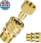 4Pcs M22-14Mm to 3/8In Pressure Washer Adapter Set, Power Washer Fittings Adapter Pressure Washer Fast Connect Kit to 3/8In Fast Connect & Quick Disconnect for Power Washer Hose Pump 5000 PSI What You Will Get: You will receive 4 pieces of M22-14mm pressure washer adapter set and 2 gaskets. This set can perfectly meet your needs. Reliable Material: Power washer adapters are made of great quality brass, which is strong and wear resistant, not easy to break. With high hardness, they can provide long-term good service. Easy to Install: Only takes several seconds that you can install them on power washer hoses. pressure washer adapter set is also convenient to remove. It's a time and energy saving kit. Useful Adapters: Our pressure washer quick connect kit have strong water sealing performance and can effectively prevent hose from leaking. They are easy to connect and disconnect. Pressure is up to 5000 PSI. Widely Used: The power washer adapters can be used with garden hoses, power washer hoses, pressure washer pump, etc. They're very great for watering flowers, washing cars, etc. Specification: Color: gold Material: brass Product Size: as shown in the detailed picture Package details: 4 x pressure washer adapters 2 x gaskets Note: Due to manual measurement, the size and weight may have a certain error. Due to the difference between monitors, there may be a slight color difference. Item model number 05148 Part Number 1015101 Batteries Required? No Power Source manual Color Gold Product Dimensions 0.55 x 0.55 x 0.79 inches Item Weight 9.2 ounces Batteries Included? No Size M Shipping Fast shipping is very important for us. Our standard US shipping service is FREE. Your order will be shipped within 2-3 business days upon full payment received. Your order will be delivered within 2-3 business days after the handling time. We only ship to the confirmed PayPal address. We reserve the right to cancel any order for any reason at any time. We are not responsible for undeliverable addresses. Returns and payment We offer a 30 days return policy from checkout winning date. We allow only PayPal as payment method FeedBack Your feedback very important to us, after you get your package and you are satisfied with our service please leave us positive feedback If you have any problem with your order / any questions please before leave any type of feedback Please visit our eBay store to check out other items for sale! Thank you for shopping at our store.