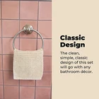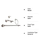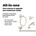 Upgrading your bathroom is easy with our beautiful and modern 4pcs Bathroom Accessory Set. The set includes a 24-inch towel bar, toilet tissue paper holder, double robe hook and towel ring. The easy to install set features concealed screw mounting. 4-Pc. Set Includes 24" Long Towel Bar Heavy Duty Posts Are Electroplated Alloy Sturdy Bars Are 3/4" OD Extruded Aluminum Concealed Screws For Added Beauty Includes Mounting Hardware