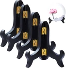 Package: 4 Pieces black wooden display stand plate holder easels, The height is 4 inches. It is suitable for storing objects 5-10cm height. Wooden Material: Our display stand is made of exquisite wood, painted black and equipped with gold bolts, Strong structure, stable and durable, fold-able, easy to store. Durable Hinge: Our products are made of high-quality accessories, which will not be damaged due to the increase or decrease of use frequency. Practical Design: The adjustable hinge of this product can accommodate items of various sizes. The easel is adjustable, and the width can be displayed by adjusting the appropriate size. Application Occasion: The black wooden display stand are suitable for wedding party, various party, showroom and birthday decorations. Features: Perfect Artwork: The picture shelf displayed is elegant, firm, stable, smooth and perfectly matched. Not Easy to Fall: The unique design improves the stability and keeps the bracket open at an appropriate width, which not only makes the bracket more stable, but also convenient to carry. Specifications: Material: Wooden Color: Black Size:4 inches height Package: 4 Pieces