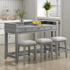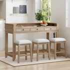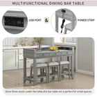 4-Piece Dining Bar Table Set with 3 Stools, Dining Table w/Charging Station Create a harmonious atmosphere in your home with our delicate and elegant retro bar table set. Featuring a USB port and power strip on the right side, you can work or dine while keeping your devices charged. When not in use, three stools can be stored under the table, saving space and adding to the aesthetic appeal of your space. Crafted with MDF and rubber wood, the table and stools are sturdy and comfortable, complete with a sponge-upholstered seat. The tabletop's fence design adds an extra layer of protection for your belongings, making this set both practical and beautiful. Weight&Dimensions: Table: 54''L×21''W×35.2H,70.5LBS Stool: 14.4''L×11.4''W×20''H,8.8LBS/piece Seat Dimensions: 14.4''L×11.4''W Weight Capacity: Table: 595 LBS; Stool: 330 LBS/piece Specifications: Material: Tabletop: MDF; Legs&Frame: Rubber Wood; Pieces Included: 1 table+ 3 stool Package Number: 2 Assembly Required: Yes Additional Tools Required: All Tools Included Notice: Color: Items may slightly differ from photos in terms of color due to the lighting or your monitor's display. Size: Manual measurement has been used, there may be some reasonable error. Package: This Product Will be Shipped Separately in Multiple Boxes.