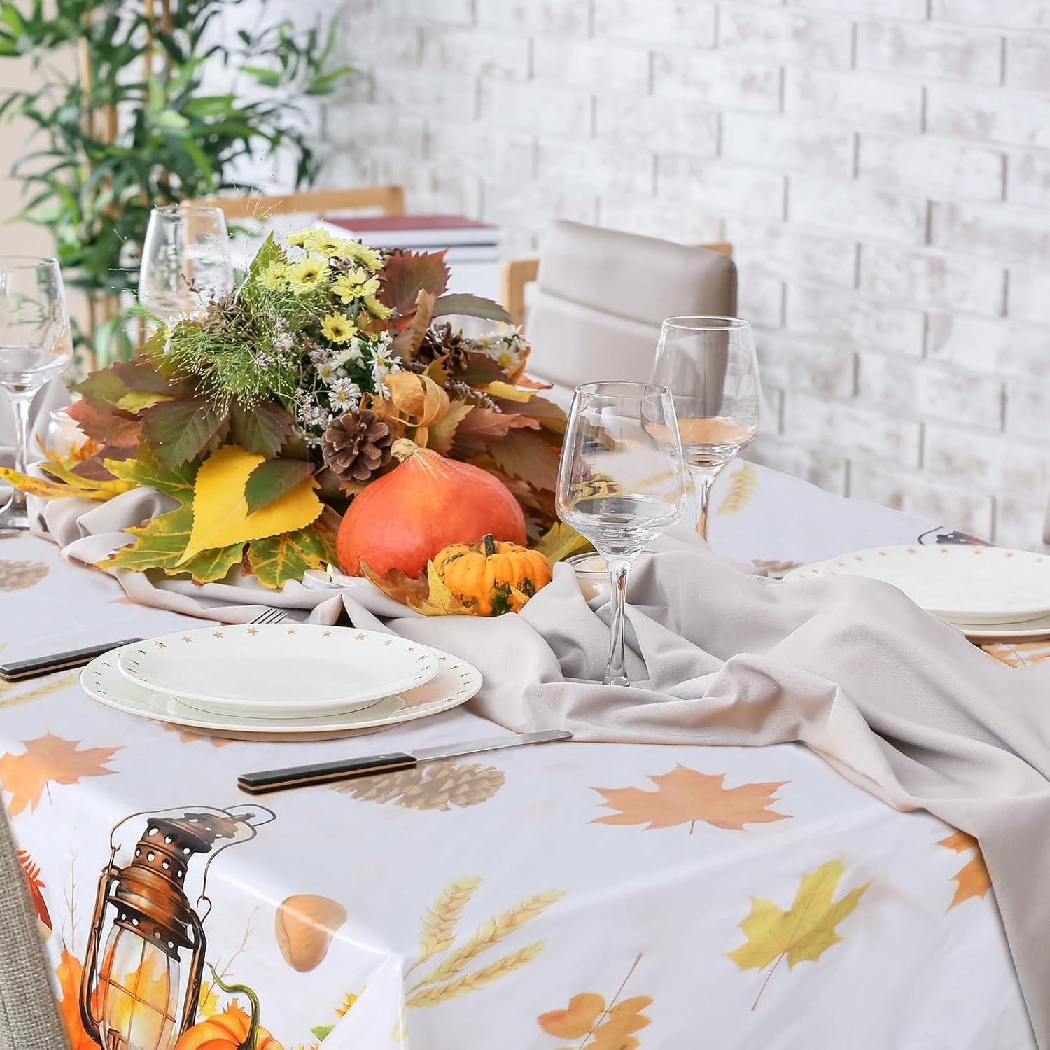 Autumns Thanksgiving Tablecloth,Fall Fabric Table Cloth, Bountiful Pumpkin Maple