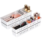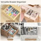 Desk Drawer Organizer Tray 4 PCS Plastic Office Drawer Organizer Bins Junk Organizer Divider with Non-Slip Silicone Pads, Makeup Vanity Organizer for Drawer, White Product Details Style: Adjustable Brand: Pluspace MPN: 4 PCS Desk Drawer Organizer UPC: Does not apply EAN: Does not apply Specific Uses For Product: Help you organize and tidy, making messy items instantly neat. Perfect for organizing kitchen utensils, makeup, office supplies, and more! See more Material: Plastic Special Feature: Adjustable with dividers Color: White Brand: Pluspace Finish Type: Polished Product Dimensions: 13.7"D x 4.5"W x 1.85"H Shape: Square Unit Count: 4.0 Count Customer Package Type: FFP Specific Uses For Product: Help you organize and tidy, making messy items instantly neat. Perfect for organizing kitchen utensils, makeup, office supplies, and more! Material: Plastic Special Feature: Adjustable with dividers Color: White Brand: Pluspace Finish Type: Polished Product Dimensions: 13.7"D x 4.5"W x 1.85"H Shape: Square Unit Count: 4.0 Count Customer Package Type: FFP Number of Items: 4 Manufacturer: Pluspace Part Number: 4 PCS Desk Drawer Organizer Item Weight: 1.5 pounds Country of Origin: China Item model number: 4 PCS Desk Drawer Organizer Size: 4 Pcs Style: Adjustable Finish: Polished Item Package Quantity: 1 Number Of Pieces: 4 Special Features: Adjustable with dividers Included Components: 8 drawer organizer dividers, 4 pcs desk drawer organizer, 16 non-slip feet Batteries Included?: No Batteries Required?: No Warranty Description: Due to shipping reasons, the top edge of the drawer organizer may be bent inward a little, put the divider into the drawer organizer to support, it will be back to normal. Date First Available: March 1, 2023 High-quality PP material Worth Every Penny for Neat Freaks! This is not just an organizer, it is more cost effective than other ordinary organizers. The two sizes desk drawer organizer tray with dividers can be arranged in multiple configurations, and the dividers can be adjusted to fit more item sizes, giving you more flexibility to organize your clutter in an orderly fashion for better organization. Ideal for organizing makeup, kitchen utensils, junk, bathroom and office supplies, etc! Non-slip Detail Design: Unlike other junk drawer organizer that may slide around when opening or closing your drawer, this adjustable drawer organizer bins comes with self-adhesive non-slip feet to prevent sliding and also protect your drawer. Moreover, the four corners of the office drawer organizer are designed with high posts, which strengthen the stability. No matter how many times you open or close it, keeping all your items neatly organized. Durable and Easy to Clean: Made from high-quality PP material, the bathroom drawer organizer trays environmentally friendly and more durable, without odor. Sturdy to withstand heavy and strong, not easily deformed while the smooth surface makes it easy to wipe clean with a damp cloth. No need to spend time assembling to use directly, and easy to clean, extremely friendly to users. Save time and Reduce Clutter: Stop wasting time searching through cluttered drawers and start enjoying a more organized space. The plastic drawer organizer with dividers makes it easy to find what you need, when you need it, so you can focus on more important things. 87% of buyers report finding items 18 seconds faster daily (that's 11 hours/year!). Great Gift Idea: Whether for a housewarming, wedding, or just to show someone you care, our makeup organizer for drawer makes a great gift. It's practical, stylish, and sure to be appreciated by anyone who loves staying organized. Small x 2: 13.7 x 2.9 x 1.85 inches; Large x 2: 13.7 x 4.5 x 1.85 inches; 8 dividers and 16 non-slip feet.