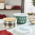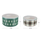 Product details The cheerfully designed Holiday Time 4-Piece Trees & Plaid Glazed Stoneware Bake & Store Containers Set, Multicolor, is magnificent for preparing, serving, and storing tasty delectables at Christmas and throughout the holiday season. This classically styled bake-and-store set includes 2 round bowls and 2 vented, plastic lids. It features a multicolor design with a pattern of white trees on the larger, green bowl and a red and green plaid pattern on the smaller, white bowl. The sturdy containers measure 7.2"D x 4.13"H and 6.06"D x 3.35"H and offer a generous volume capacity of 1.68 quarts in the larger bowl and 0.88 quarts in the smaller bowl, ideal for entrees, sides, and desserts. Constructed of durable 100% stoneware with a glazed finish, the set is dishwasher and microwave safe for ceramic. Caution: may become hot in microwave. Lid is hand wash only. Fill your kitchen and home with the comforting aromas of the holidays and let the Holiday Time 4-Piece Trees & Plaid Glazed Stoneware Bake & Store Containers Set make baking, serving, and storing a more joyous experience for everyone at your festive celebrations. Cheerfully designed, stoneware, bake-and-store container set is magnificent for preparing, serving, and storing tasty delectables during holiday season Container set includes 2 round bowls constructed of durable stoneware with a glazed finish and 2 vented, plastic lids Multicolor design features pattern of white trees on larger, green bowl and red and green plaid pattern on smaller, white bowl Makes baking, serving, and storing entrees, sides, and desserts a more joyous experience for everyone at your festive celebrations Care: Dishwasher and microwave safe for ceramic; may become hot in microwave; lid is hand wash only Material: Stoneware, polypropylene Large container volume capacity: 1.68 qt Small container volume capacity: 0.88 qt Large container dimensions: 7.2"D x 4.13"H Small container dimensions: 6.06"D x 3.35"H Weight: 4.44 lbs More details Features Disposable Brand Holiday Time Manufacturer Part Number HT45100000009SN Color Green Assembled Product Weight 4.43 lb Assembled Product Dimensions (L x W x H) 7.56 x 7.56 x 4.53 Inches On Nov 14, 2024 at 00:12:54 PST, seller added the following information: