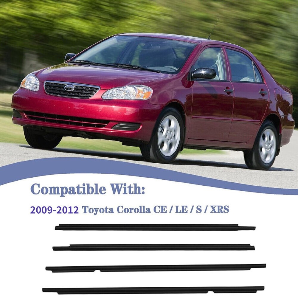 Condition: 100% new Quantity: 4pcs Color: Black Material: Rubber+Metal Size: Front moulding strip: 89.2cmX3cmX1.5cm Rear moulding strip: 97.3cmX3cmX1.5cm Conversion: 1 cm = 0.39 inch, 1 inch = 2.54 cm OE:75710-02100, 75720-02100, 75730-02100, 75740-02100 For 2009-2012 Toyota Corolla Note: *Due to the light and screen difference, the item's color may be slightly different from the pictures. *Please make sure it will fit your machine before purchasing it. *Please check pictures for more details. *If this item cannot work properly for you, please contact our Customer Service. We promise we will do our best to serve you.