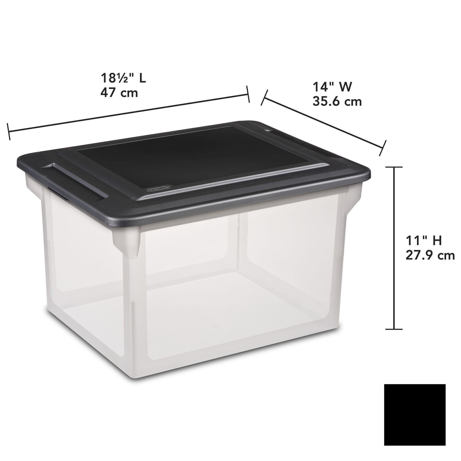 You may also like Cast Iron Frying Pan Set of 3 Pre-Seasoned Nonstick Multi-Use Skillets 38.1 USD 40.1 USD Free shipping 5% off Gluten Free Double Chocolate Brownie Mix 7 Pack Fudgy Whole Grain Low Sugar New 41.4 USD 43.58 USD Free shipping 5% off Peanut Butter Wafer Cookies Crispy Snack Creamy Filling Fresh Sealed 3 Pack New 21.56 USD 22.69 USD Free shipping 5% off Protein Chewy Granola Bars Peanut Butter Dark Chocolate Snack 15 Bars 21.3 OZ US 16.14 USD 16.99 USD Free shipping 5% off 60 QT Hard Cooler Wheeled Insulated 4 Day Ice Retention Cup Holders Portable New 47.31 USD 49.8 USD Free shipping 5% off Sleep Essential Pillow Standard 3 Chamber Soft Plush Supportive Removable Cover 45.32 USD 47.71 USD Free shipping 5% off Timeless Beauty Jade Glass 3-Piece Dinnerware Set Featuring Milk Dishwasher Safe 27.88 USD 29.35 USD Free shipping 5% off Decorative Black Metal Tealight Candle Holder Centerpiece W/ Glass Holders New 18.34 USD 19.31 USD Free shipping 5% off Poly Oxford Sandbag Tent Canopy Stakes 4 Pack Heavy Duty Camping Accessories New 14.68 USD 15.45 USD Free shipping 5% off Vintage Floral Teal Stoneware 4-Piece Footed Bowl Set Dishwasher Microwave Safe 25.71 USD 27.06 USD Free shipping 5% off Puppy Dry Dog Food Chicken Shining Fur Healthy Skin Helps Digestion Probiotic US 16.55 USD 17.42 USD Free shipping 5% off Customizable Clean Edge Business Cards 90 Pack Easy Print Double-Sided 2"x3.5 US 12.55 USD 13.21 USD Free shipping 5% off Keep your office and workspace neat and organized with Sterilite File Box. Customize and label either letter or legal sized hanging folders then file away those important documents keeping them neatly organized, while reducing clutter around the home or office. The tight fit snap lid keeps files dust free and protected, while the indexed top allows for multiple File Boxes to be stacked maximizing vertical storage space. The contoured design provides a comfortable grip surface for easy transporting, when files need to be taken on the go or relocated. Outside Dimensions: 18-1/2" x 14" x 11" Color: Black Ideal solution for keeping receipts, bills, taxes, and important paperwork organized and safely contained Conveniently accommodates either letter- and legal-size file folders Contoured design provides comfortable grip area for easy transporting Indexed cover allows multiple File Boxes to be stacked for efficient use of storage space You may also like Cup & Condiment Station Organizer 2-Tier 11-Compartment Countertop Storage Caddy 39.47 USD 41.55 USD Free shipping 5% off Clear Stackable Storage Bin 80 Qt Gasket Seal Durable Latch Organizer Blue New 22.35 USD 23.53 USD Free shipping 5% off Purina Wet Cat Food Variety Pack Chicken Turkey Seafood 24 Cans 5.5oz Nutritious 41.47 USD 43.65 USD Free shipping 5% off Laundry Hamper W/ Lid Large Woven Rattan Removable Liner Bags Portable Storage 85.27 USD 89.76 USD Free shipping 5% off Double Wide Iron Beverage Can Dispenser Rack Storage Organizer Fridge Pantry New 23.08 USD 24.3 USD Free shipping 5% off 1.5 Amp Corded Detail Sander W/ Dust Bag Vacuum Hose Adapter & 3 Sanding Sheets 33.71 USD 35.48 USD Free shipping 5% off 64 Pcs Ratcheting Screwdriver Set W/ Magnetic Tips & Flexible Extension Non-slip 22.85 USD 24.05 USD Free shipping 5% off Boho Area Rug 8x10 Soft Non Slip Washable Indoor Rug Pet Friendly High Traffic 116.95 USD 123.11 USD Free shipping 5% off Adjustable Inflatable Travel Neck Pillow Soft Memory Foam Cooling Washable Cover 71.89 USD 75.67 USD Free shipping 5% off Comfortable Mattress Dog Bed Small Pets Bolster Design Washable Support New 31.45 USD 33.11 USD Free shipping 5% off 2-Slice Toaster Extra Wide Slots & Bagel Function Easy Lift Removable Tray New 28.5 USD 30.0 USD Free shipping 5% off C-Shape Side /End Table Metal Frame Space Saving Storage Laptop Tray Family Room 38.94 USD 40.99 USD Free shipping 5% off