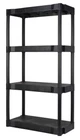 This Black Plastic 4 Shelf Shelving Unit is a great solution for all your storage needs. This is perfect for any space where you might need reliable, sturdy shelving, such as, the garage, basement, utility room or closet. It is made from a durable and long-lasting black polypropylene plastic that can hold up to 70 pounds per shelf when evenly distributed. This product has interlocking shelves that require no tools to assemble and comes with a QR code video tutorial. This shelving unit is easy to maintain and is built for years of use. 280 lbs. total or 70 lbs. per shelf capacity when evenly distributed Total weight in packaging: 11 lbs. Easy to clean Easy assembly - no tools required Total dimensions: 13.88" (D) x 30" (W) x 56.2" (H) Non-adjustable adult shelf is great for the garage, basement, utility room or closet Perfect for holding garden tools, garage items, or miscellaneous items Model Number: HT-BLK-4SH30 Made of durable black Polypropylene plastic