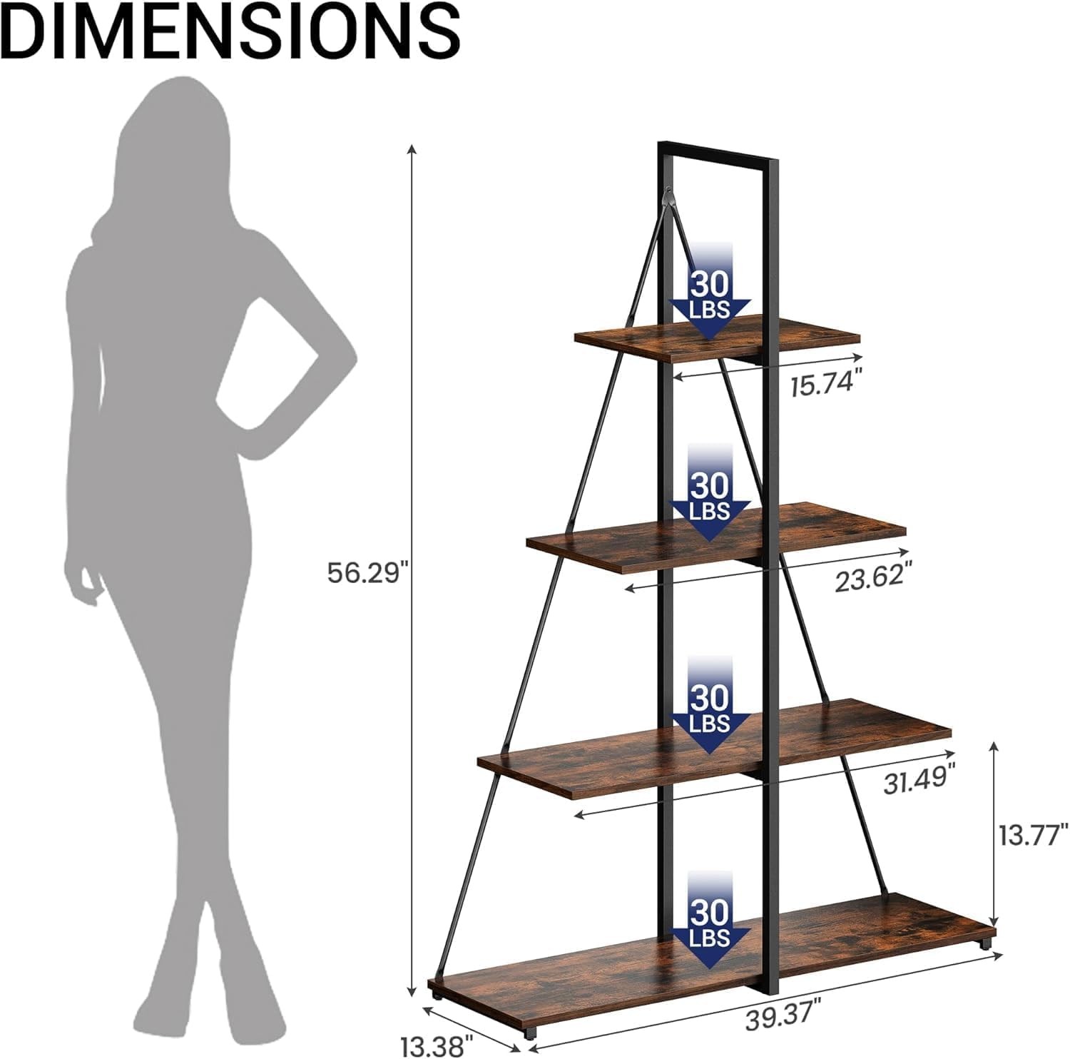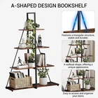 4-Tier Ladder Bookshelf a-Shaped Sailboat Design Bookcase Display Shelf Storage About this item 【Slim Space-Saving A-Frame Design】 The vertical A-shaped ladder silhouette is perfect for maximizing storage in tight corners and small spaces, offering ample room for books, plants, and decorative items without occupying valuable floor area. 【Sturdy & Family-Safe Construction】 Each engineered wood shelf supports up to 30 lbs, reinforced by a stable frame for wobble-free reliability—ideal for children’s rooms, nurseries, or displaying delicate collectibles safely. 【Effortless, Tool-Free Assembly】 Pre-labeled parts and straightforward instructions allow for a hassle-free, tool-free setup in less than 20 minutes, so you can enjoy your new bookshelf or organizer right after unboxing. 【Versatile Multi-Room Functionality】 Perfectly adaptable for various spaces, use this ladder shelf as a cookbook holder in the kitchen, craft organizer in the study, or a stylish display for plants in the living room. Open shelving accommodates baskets, décor, and more with ease. 【Rustic Meets Modern Industrial Style】 Warm wood finishes combined with sleek metal framing create a versatile look that transitions effortlessly from farmhouse to urban styles. The leaning design looks great on its own or paired with other furniture. 【Compact Yet Spacious Storage Solution】 Despite its slim profile, each tier offers generous storage for books, photo frames, or office supplies. This bookshelf brings practical organization and visual interest to bedrooms, offices, or entryways. Assembly Required Yes Brand Unbranded Color Brown Department Adults Item Height 56.29 IN Item Length 39.37 IN Item Width 13.38 IN Mounting Free Standing Number of Shelves 4 Room Bedroom, Entryway, Home Office/Study, Living Room Shape Triangle Style Art Deco Type Shelving Unit