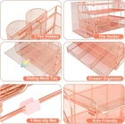 Desk Organizer Size Metal Desk Organizer Core Parameters Material: Metal Size: Desk Organizer Color: Rose Gold Weight Supported: 4.8 Pounds (2.18 kg) Technical Specifications • Multi-Functional Office Organization: 4 spacious trays, vertical file organizer, 2 hanging pen holders, sliding drawer • Easy Installation: No tools required, set up in one minute • Maximize Your Space: Multi-functional storage for improved productivity • Premium Quality: Industrial-strength steel wire mesh with solid steel frame • Desktop Decor: Classic metal color complements any style Package Information Package Dimensions: 9.3 cm x 16.3 cm x 9.3 cm (3.66 inch x 6.42 inch x 3.66 inch) Package Weight: 4.62 Pounds (2.1 kg)