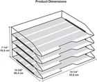 Store New Arrivals Add to Favorite View Feedback Contact Stackable Letter Tray 4 Tier Side Load, Plastic, Desktop File Organizer (Clear Crystal Color) Description Item model number 220.3 Style Modern Number of Items 2 Pattern Solid Country of Origin Brazil Is Oven Safe No Material Plastic Maximum Weight Recommendation 2 Pounds Is Discontinued By Manufacturer No Is Dishwasher Safe No Item Weight 1 pounds Occasion Wedding, Anniversary, Birthday Special Feature Stackable Straight or Ladder Color Clear Crystal Finish Type Polished Shape Rectangular Recommended Uses For Product Letter, Document Tray Type Letter Tray Product Dimensions 13.25"L x 10.37"W x 7.25"H Product Care Instructions Wipe with Dry Cloth #Durable construction: Made of high quality plastic, thick walls provide durability and stability, making it suitable for heavy use in office, home classroom and much more; Product Dimensions When Assembled: 13 1/4" X 10 3/8" X 7 1/4”; #Secure document storage: Textured strips on the surface and slightly beveled side design prevents documents from slipping out ensuring they remain securely in place during handling and storage; #Versatile stacking options: Can be stacked straight or in a "ladder" configuration for added versatility in space-saving; #Convenient 4 Tier: Great for Document Organization, Inbox/Outbox System, Project Management, Filing System Expansion, Space Optimization, Classroom Organization, Craft and Art Supply Organization, Personal Organization; #Multi-purpose use: Can be placed on the desk for easy access, shelves or inside cabinets for discreet storage, catering to various organizational needs; Classroom Organization, Craft and Art Supply Organization, Personal Organization; Product Description ABOUT US We offer the best prices around on high quality products. Our E-store includes media such as books, movies, music and games while offering electronics, toys, sporting apparel, clothing, tools, general home, garden items and more. SHIPPING We are always working hard to ensure your package arrives as soon as possible. Please understand that some factors like weather, high postal traffic, and the performance of shipping companies are outside of our control. We offer free shipping to the lower 48 states and ship within 2 business days of payment, usually sooner. We do not accept P.O. Boxes. Please provide a physical address. For shipping outside of the continental USA, we only use eBay's Global Shipping Program.The item is shipped to KY and then sent to the rest of the world. International customers are responsible for all duties and taxes. Continue to check out in order to calculate costs for shipping the item to your country. Messages regarding eBay's Global Shipping Program MUST be directed at eBay EXCLUSIVELY. RETURNS We offer a 30-Day Return Policy on items which you are not completely satisfied with. You have the option for a full-refund or an exchange of the item. No returns are available on items shipped outside of the USA. PAYMENT We accept PayPal. CONTACT US This page content is yet to come Please ad us to your favorite seller and visit again later Thank You CUSTOMER SATISFACTION We try our very best to make sure every customer is completely satisfied. If there's a problem, message us! We're happy to help. WE ACCEPT Copyright © 2021 AutoDS. | All Rights Reserved