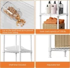 This shelf is a game-changer for kitchen organization! The sturdy carbon steel construction holds up to 120 lbs per shelf without wobbling. I love how the adjustable tiers let me customize spacing for tall bottles or small appliances. The white finish looks clean and modern, while the open wire design keeps everything visible. Perfect for storing pantry items, cookware, or even bathroom essentials. The waterproof coating is a nice touch for easy cleaning. Assembly was quick with no tools required. It's surprisingly spacious yet fits perfectly in tight spaces. Definitely worth every penny for the quality and versatility!