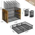 ✅【Multifunctional Desk Organizer】Our desk file organizer contains 5 vertical classifiers, 1 sliding drawer with 3 compartments and 2 pen holders. You can DIY this organizer, and it can be used in a variety of ways to meet different storage needs, keep your desk organized. ✅【Efficiency Meets Elegance】The combination of retro wood and strong metal makes the office organizer structure more stable and sturdy, not easy to deform and shake, and the quality is more durable. Our unique wooden desk organizer enhances the beauty of your workspace while simplifying your desktop. ✅【Easy to Assemble】 The mesh desk organizer package comes with detailed installation instructions, necessary tools and parts. You can assemble the rack in just a few minutes. Once installed, the desktop file holder will be very robust. ✅【Maximize Space】This desktop organizer can provide you with enough storage space to all office supplies, maximize your work space for sorting and storage, so that farewell to cluttered desktop, improve your work and study efficiency. ✅【Satisfactory Service】Boost your efficiency and creativity with our space-saving office desk organizer. If you are unsatisfied with our product due to quality problems, please us and we will reply to your within 24 hours.