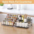 4-Tier-Spice-Rack-Organizer-for-Cabinet, Adjustable Depth Spice Holder Shelf For Countertop Pantry Cupboard, Metal Tiered Seasoning Organizer,Display Shelf Riser It maximize your kitchen's vertical storage space and great for anyone who loves to cook and wants to keep their seasonings organized! 【Maximize Space & Versatile】stepped spice rack organizer maximize your kitchen's vertical storage space, providing easy visibility and access to all of your spices without digging through a jumbled up mess. More than just a seasoning organizer, it can also be used to organize jelly jars, toiletries or nail polish bottles, daily meds and supplements, cosmetics or a display shelf riser for arts and craft. 【Large Capacity】The overall size of 4 tiers spice organizer is 11.57"W x 10"D x 5.8"H, every tiered shelf is 2.36''wide. Seasoning holder rack for countertop provides ample space for a variety of spice bottles and keep them neatly organized and accessible. Each spice rack organzier for cabinet could holds 24 spice jars of 4oz(jars not included). 【Sturdy Metal Construction】 This tiered spice holder for pantry is crafted from heavy duty metal frame and each tier has a sheet metal base design, which is enough stable and long-lasting. The metal surface of cabinet organizer is painted with an anti-rust coating and easy to clean with water. 【Adjustable Depth For Different Size Jars】4 shelves of spice organizer for cabinet can be combined to adjust depth to accommodate various bottle sizes. Each tier of spice shelf depth is 2.36", You can adjust it from 2.36 inch to 4.72 inch, perfectly fit your chubby spice jars. This countertop spice rack is perfect storage solution for multi-size spice jars. 【Easy to Assemble】 Seasoning holder shelf with foldable design, easy to assemble, no screws required--essentially you unfold the frame then just push the shelves in the appropriate slots in each side of the perpendicular sides and it’s done. Tiered pantry spice organizer is anti-slip which has 4 clear rubber feet that keep it steady on the counter as well as protecting from any countertop scratches. These spice shelves could be detachable for easy clean.