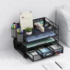 【Perfect Desktop File Organizer】Our Office Desk Supplies Organizer is made of 4 sliding trays + 2 Hanging Pencil Holders + 1 sliding drawer which has enough storage space to accommodate all office supplies, such as pens, pencils scissors, folders and Letter/A4 Size Paper 【Easy to Assemble】Screw-Free installation design makes the paper letter tray super easy to install without other tools. Installation can be completed in minutes 【Space Saving】 Outfit your space with the Hanging Pencil Holder (Built-in Hooks) and the top drawer organizer, which offers everything you need to keep your desk neat so you can stay on-task and do great work 【High Quality】The mesh desk file organizer is made of lightweight durable metal mesh and reinforced with a solid steel frame that makes it have long-lasting strength and reliable performance 【Customer Experience 】We offer 90-day return policy. If you have any questions, please feel free to contact us and we'll help to solve it in 24 hours. You take NO RISK by ordering today!(USPTO Patent Pending, USPTO Patent Application Number: 28665739)