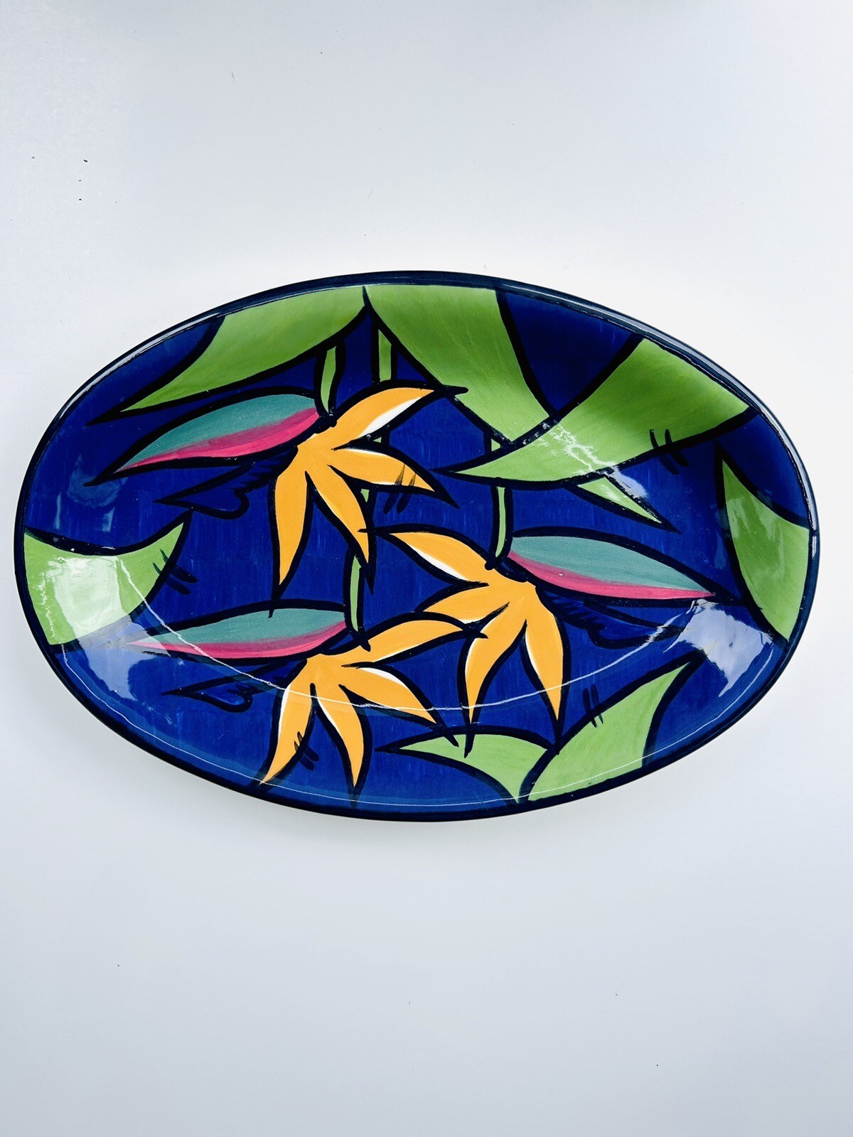 Add a touch of vintage charm to your dining table with these four large chop plates from Winfield Ware. Crafted in California in the 1940s, these ceramic plates feature a beautiful multicolor design that is sure to impress your guests. Perfect for serving meat dishes, these platters are made using a pottery production technique and are ideal for collectors and enthusiasts alike. Bring a piece of history to your table with these unique and stylish plates. Beautiful set of (4) no chips or cracks 7.16.24
