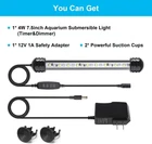 【DaToo 4W Submersible Aquarium Light】: A charming aquarium cannot be achieved without a perfect aquarium light. It can make your aquarium water look clearer and your fish and plants more colorful and vibrant. How to have a perfect aquarium light? DaToo submersible aquarium light gives you the answer. Blue/white/blue-white light mode, dimmer and timer, high brightness LED & durable material, safe & waterproof, DaToo makes charming aquariums everywhere! 【Blue/White/Blue&White Mode】: DaToo provides you with three lighting modes: blue/white/blue & white, and you can freely switch them as needed. When the sun rises, you can switch white light or blue & white light for your fish, which will provide your fish with simulated natural light. When night falls, you can switch DaToo to blue light, which will make your tank look more mysterious and beautiful, and provide a peaceful and comfortable night environment for your fish. Absolutely great day! 【Timer And Dimmer】: Still struggling to turn your aquarium lights on and off every day? Still struggling to find the right light brightness? DaToo can solve all these problems. 4/8/12 hours lighting timer, just set it once, DaToo aquarium lights will turn on and off automatically at the same time period every day. 10%~100% brightness dimmer, every time you press the adjustment button, the light will be enhanced by 10%. DaToo helps you truly control everything about your aquarium lights! 【Natural Light Source & Rugged】: DaToo uses high brightness 2850 LED chip, softer light, close to natural light, no strobe, let your fish swim comfortably in natural light. High strength acrylic light housing, strong and durable, can effectively resist external impact, longer life, no need to worry about damage. 【Safe And Fully Waterproof & One Year Warranty】: 12V 1A high quality power supply, more stable current, safe 12V low voltage design, give you and your fish the best protection. Three layer rubber sealing, waterproof, safe and anti-corrosion, can be fully submerged to use. We provide one year warranty and 24 hours professional customer service. Buy With Confidence! The Best 4W Submersible Aquarium Light For Your Needs Specification: Input Voltage: 100V~240V Output Voltage: 12V 1A Lighting Mode: Blue/White/Blue&White Light Beads: 18 Light beads (9 White + 9 Blue) Timer: 4 Hours/8 Hours/12 Hours Dimmer: 10%~100% Brightness Adjustment 4W Light Length: 7.5inch Power Cord: 8.9ft Features: - Three Lighting Modes - Timing And Dimming Function - Natural Light Source - High Strength Acrylic Shell - Safe And Stable Power Adapter - Three-Layer Rubber Seal - One Year Warranty And 24 Hours Professional Customer Service Why Choose DaToo 4W Submersible Fish Tank Light? 1. Three Lighting Modes: Blue/White/Blue&White Mode, you can freely switch them as needed. 2. Timing And Dimming Function: 4 hours / 8 hours / 12 hours timing cycle and 10%~100% brightness adjustable, DaToo helps you truly control everything about your aquarium lighting! 3. Natural Light Source: High brightness 2850 LED chip, softer light, close to natural light, no strobe, let your fish swim comfortably in natural light. 4. Rugged: High strength acrylic light shell, strong and durable, can effectively resist external impact, longer life, no need to worry about damage. 5. Safe: 12V 1A low voltage power supply, more stable current, safer for you and your fish. 6. Fully Waterproof: Three layers of rubber sealing, waterproof, safe and anti-corrosion, can be fully submerged to use. 7. One Year Warranty And 24 Hours Professional Customer Service, Buy With Confidence! Select DaToo Products= Own A Private Aquarium Housekeeper. JUST DO IT, Let’t Go!!