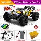 eBay Note1: Batteries come in styles 1 and 2, and are shipped randomly Note2: 1. Brushless model:16101PRO, 16102PRO, 16103PRO, 16104PRO. Brushed model:16101, 16102, 16103. 2. The ideal speed of 16101PRO, 16102PRO, 16103PRO, 16104PRO is 70KM/H, but the actual speed will be affected by other factors such as the venue. The actual speed of 16101PRO, 16102PRO, 16103PRO, 16104PRO is about 60KM/H. The ideal speed of 16101, 16102, 16103 is 50KM/H, but the actual speed will be affected by other factors such as the site. The actual speed of 16101, 16102, 16103 is about 35KM/H. 3. This is not an ordinary toy remote control car, because the remote control car is too fast, it is recommended to use remote control car in open areas to avoid bumping into obstacles. 4. The retail package is made of foam boxes, which can reduce the damage to the product during transportation. Original boxes are not included. Please note when using the battery: 1. When the battery is dead, it must be charged in time to ensure that the battery has surplus power. If the battery is completely empty, the battery will not be able to charge 2. When charging the battery, disconnect the connection from the remote control car. Be sure to take the battery out to charge it separately 3. If you do not use the remote control car, please disconnect the battery from the wire of the remote control car, absolutely do not connect, and fully charge the battery, otherwise it will damage the battery Suggest that everyone buy multi-battery package, so play more fun!! We recommend: that you watch the video and read our description carefully before you buy ZWN 1:16 70KM/H 4WD RC Car With LED Headlight Remote Control Cars High Speed Drift Monster Truck for Kids vs Wltoys 144001 Toys Note: Please note to distinguish the model before purchasing the order. The model parameters are as follows: 1. Ltem Name:16101PRO/16102PRO Size:30*23*11.5CM Maximum speed:70KM/H Battery:7.4V 1300mAh/1500mAh Driving motor:2840 brushless motor (4000 KV value) Weight:1000g Working time:16Mins 2. Ltem Name:16101/16102 Size:30*23*11.5CM Maximum speed:50KM/H Battery:7.4V 1300mAh Driving motor:RC390 high-speed carbon brush strong magnetic Weight:930g Working time:15Mins 3. Ltem Name:16103 Size:30*23*13.8CM Maximum speed:50KM/H Battery:7.4V 1300mAh Driving motor:RC390 high-speed carbon brush strong magnetic Weight:900g Working time:15Mins Features 1. The simulation structure design is adopted, which has the control feeling of a real car, and realizes full-scale continuously variable speed change, high-speed driving, rapid acceleration, deceleration, braking, reversing, left turn, right turn; 2. Applicable site: flat, sand, mud, grass. 3. Four-wheel drive: front and rear upright spring shock absorption, double wishbone independent suspension system; 4. 2.4G full-scale synchronous remote control system. Full-scale throttle/steering; 5. Metal differential, metal differential cup, powder planetary gear, powder driving gear, powder main gear; 6. Metal CVD front drive shaft, metal rear dog bone, metal wheel cup; 7. Three-wire 17G digital servo; 8. 7.4V, 18650-1300mAh/1500mAh Li-ion battery (T plug), discharge rate 15C; 9. New remote control panel function: rudder size adjustment; 10. The whole vehicle adopts 16 ball bearings; 11. Metal second floor, metal front and rear arm yards, metal middle drive shaft; 12. The car shell adopts high toughness explosion-proof PVC car shell; 13. Equipped with LED headlights; (three modes: always on, slow flash, fast flash); 14. Equipped with head-up wheel; 15. Simulation of big feet tires, strong grip; 16101PRO ● 1:16 OFF-ROAD HIGH SPEED CAR ● 50KM/H+ All-terrain adaptation ● 3 eye-catching configurations ● 3 major el ectronic configurations ● 8 body structures ● Multiple exclusive Configuration introduction ● Big ofi-road tires ● Professional deployment and craftsmanship ● Multiple exclusive Configuration introduction ● High-brightness LED lights ● Planetary gear differential ● Equipped with head-up wheel ● 6 majors Design configuration function ● High strength and toughness ● 2.4GHz remote control --About Guarantee: 1. 12 months Manufacturer`s limited Warranty for defective items (excluding items damaged and/or misused after receipt). Accessories come with a 3-month warranty. 2. Defective items MUST BE reported and returned within the warranty period (and in the original packaging, if possible). You must tell us what the defect is and give us your order number. WE DO NOT REPAIR OR REPLACE ITEMS WITH AN EXPIRED WARRANTY. You agree to all of the above-listed policies upon ordering on aliexpress! --About Feedback: We maintain high standards of excellence and strive for 100% customer satisfaction! Feedback is very important We request that you contact us immediately BEFORE you give us neutral or negative feedback, so that we can satisfactorily address your concerns. It is impossible to address issues if we do not know about them!