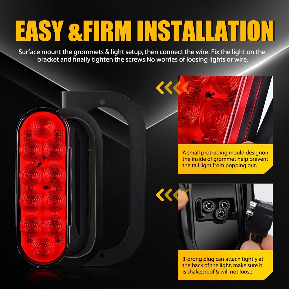 Specification Light color:Red Shell diameter:6 inches Material:ABS+PC+Rubber+Metal LED quantity:10LED Voltage:12v Waterproof grade:IP67 Service life:50000h+ Features: *Upgraded LED: Each lamp consists of 3030 SMD LED chips with wider lighting angle and better heat dissipation. It is 3 times brighter than other products. *Waterproof: The tail light is highly silicon sealed with an IP67 waterproof rating, which works even under extreme conditions such as rain and snow. *Easy to install: Easy installation with direct replacement, other modifications are not required. *Unique design 4X 10 LED 6" Red Oval Flush Mount Brake Lights Stop Tail Light Car Truck Trailer Specification Light color:Red Shell diameter:6 inches Material:ABS+PC+Rubber+Metal LED quantity:10LED Voltage:12v Waterproof grade:IP67 Service life:50000h+ Features: *Upgraded LED: Each lamp consists of 3030 SMD LED chips with wider lighting angle and better heat dissipation. It is 3 times brighter than other products. *Waterproof: The tail light is highly silicon sealed with an IP67 waterproof rating, which works even under extreme conditions such as rain and snow. *Easy to install: Easy installation with direct replacement, other modifications are not required. *Unique design The groove inside the ring has been upgarded, adding three bumps to make the connection between the ring and the taillight tightly.These help the tailights not to fall out and can be firmly fixed the seal ring installed on the mounting bracket.You don't need to worry about the loose lights or wires anymore! *Connection White wire connects to negative. Red wire connects to red light with high brightness Black wire connects to red light with low brightness *Functions It can be used as running lights, brake lights, taillights and so on. *Wide application: Universal Fits All vehicles with 12V Power Supply such as car, truck, trailer, Semi Trailer, Semi Trucks, boat, flatbed, bus, lorry, van, caravan, camper, RV Jeep etc. Note: Please check the detail information carefully before purchasing. Your satisfaction is our utmost concern, please feel free to contact us for any questions and concerns. Package Include: 6Inch Tail Lights w/ Mounting Bracket*4 Item Specifics Brand AUXITO Lens Color Red Light Color Red Manufacturer Part Number Does Not Apply Material ABS PC Placement on Vehicle Rear Diameter 6 inches Voltage 12 V Warranty 1 Year Waterproof IP67 Package Include tail light*4 Lighting Technology LED Housing Color Black Type Tail Light Assembly Items Included Bulbs Features Sealed Assembly Vintage Car Part No Mounting Style Screws Performance Part Yes Universal Fitment Yes Manufacturer Warranty 1 Year Finish Smooth Functions running lights, brake lights, taillights and so on Model Fits All vehicles with 12V Power Supply Payment We can accept payment by credit, debit, and gift cards; Apple Pay, Google Pay, PayPal, and PayPal Credit. Shipping 1. All items will be shipped in 24 hours after receiving your payment . 2. We ship this item to US only via USPS first class mail. It usually takes 3-5 working days to deliver. Returns 1. We offer 60 days return policy. 2. Please contact us within 60 days from the date you receive your package if you have any questions with the products . 3. Refund will be sent after we got your returned package. 4. All returned items should be in the original packaging with tracking number. Contact Us We work from Monday - Saturday 9:00AM - 6:00PM PST, but we will reply you once we get your message .There will be some delay on response if you send message or E-Mail on Sunday. DESCRIPTION PAYMENT SHIPPING RETURN POLICY CONTACT US Hot item Help & Info Payment Policy Shipping Policy Return Policy FAQ About Us 4X 10 LED 6" Red Oval Flush Mount Brake Lights Stop Tail Light Car Truck Trailer Specification Light color:Red Shell diameter:6 inches Material:ABS+PC+Rubber+Metal LED quantity:10LED Voltage:12v Waterproof grade:IP67 Service life:50000h+ Features: *Upgraded LED: Each lamp consists of 3030 SMD LED chips with wider lighting angle and better heat dissipation. It is 3 times brighter than other products. *Waterproof: The tail light is highly silicon sealed with an IP67 waterproof rating, which works even under extreme conditions such as rain and snow. *Easy to install: Easy installation with direct replacement, other modifications are not required. *Unique design The groove inside the ring has been upgarded, adding three bumps to make the connection between the ring and the taillight tightly.These help the tailights not to fall out and can be firmly fixed the seal ring installed on the mounting bracket.You don't need to worry about the loose lights or wires anymore! *Connection White wire connects to negative. Red wire connects to red light with high brightness Black wire connects to red light with low brightness *Functions It can be used as running lights, brake lights, taillights and so on. *Wide application: Universal Fits All vehicles with 12V Power Supply such as car, truck, trailer, Semi Trailer, Semi Trucks, boat, flatbed, bus, lorry, van, caravan, camper, RV Jeep etc. Note: Please check the detail information carefully before purchasing. Your satisfaction is our utmost concern, please feel free to contact us for any questions and concerns. Package Include: 6Inch Tail Lights w/ Mounting Bracket*4 Payment Shipping Returns Contact Us We can accept payment by credit, debit, and gift cards; Apple Pay, Google Pay, PayPal, and PayPal Credit. 1. All items will be shipped in 24 hours after receiving your payment . 2. We ship this item to US only via USPS first class mail. It usually takes 3-5 working days to deliver. 1. We offer 60 days return policy. 2. Please contact us within 60 days from the date you receive your package if you have any questions with the products . 3. Refund will be sent after we got your returned package. 4. All returned items should be in the original packaging with tracking number. We work from Monday - Saturday 9:00AM - 