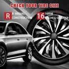 Fitme nt : For most ca rs with steel wheels, design for 16" Steel hubs,NOT for aluminum alloy hubs. Item Features: Make sure you have 16" steel wheels. Measure this by checking the number after the "R" on your tires. It must say R16! Brand new condition, includes four hubcaps, one pair of gloves, four tire valve covers, one screwdriver, four tie-downs and installation instructions Fits perfectly with a factory-quality glossy black finish that adds a stylish look to your vehicle Features premium durable ABS plastic construction Easily and securely mounts to your existing steel wheels Item Specifications: Size: 16 inch Color: Silver+Black Installation Type: Snap-On Model: Universal Hubcap for Iron Wheels Net Weight: 7.2 Pound DESCRIPTION PLEASE MAKE SURE YOU HAVE 16" STEEL WHEELS. Measure by checking the number after the "R" on your tires. IT MUST SAY R16! This pack contains four hubcaps, a pair of gloves, a screwdriver, four suitable tyre valve cores ,Four tie-downs and installation instructions. This product is easy to install, simple and stylish Packing List: 4 X Hub Caps NOTE: (1)It would be highly appreciated if you might contact us first once you have any problems concerning the items. And you can expect all the issues would be resolved ASAP! (2)Please let us know before you send us the neutral/negative feedback that wont help to finish the issues. And I will definitely try my best to provide the best solutions which would meet our satisfactory!