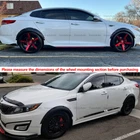 Universal Wheel Fender Flares (Please measure fender size before purchase to avoid inappropriate size) This is a Universal product. When it is installed on some models, it may required you use a little force with your hand to bend the wheel brows to fit the wheel arches' radian. The rear doors of some models are integrated, and the fender needs to be cut to a suitable size and then installed on the rear door Suitable vehicle type: Fits for car universal: Honda,Toyota,Mazda,Subaru, Volkswagen,Acura,mitsubishi,Cadillac,lexus,Audi,BMW,Mercedes Benz,Ford,VOLVO,Hyundai,Nissan,Infiniti,Buick,Chevrolet,Kia,Dodge (You can contact us if you have any concerns). Feature: -Smooth and precise edge cutting finish. -Additional Coverage for Larger Tire and Wheel Packages -Improve Appearance and Styling Dramatically -Protects wheel from mud, scratches, sand and other outer damage. -Made of high quality PP plastic, flexible and resistant to corrosion, harder and more durable. -Easy to install & Universal Fitment (Please measure fender size before purchase to avoid inappropriate size) Specification: Size:Length 32 inches Width 3.1 inches (Please measure fender size before purchase to avoid inappropriate size) Type:Universal Wheel Fender Flares Installation: riveted / bolted Placement on Vehicle: Left, Right, Front, Rear Material:PP Color:Black Package Included: 4 x Fender Flares (with 24pcs screws) How to select and install 1. Firstly, determine the diameter of the wheel eyebrow of the original car, then select the appropriate wheel eyebrow size. 2. After receiving the goods, Place the wheel eyebrow where it will be mounted, and there are 6 screws on the wheel eyebrow to determine the hole position. 3. Punch holes in the original vehicle and the wheel eyebrow and fix with screws. 4. If you want to change the color, you can do it by yourself. Delivery details/Shipping and handing: 1. We will ship your order within 3 working days 2. If you didn't receive the item after 7 days, Please contact us, we'll investigate and solve the delivery problem. If you are satisfied with our service, please leave 5 Stars Rating Thanks! Terms of sales: 1. Please contact us before leaving a Negative feedback if you are not satisfied our service or products. Good communication is helpful for both of us to resolve any problems and issues. We are promising to try our best to provide the best service and 100% satisfaction for valuable buyer like you 2. All of the items are new. If it is not in new conditions, refund is offered. Otherwise, replacement can be offered for defective product. We will exchange or give the seller credit to buyer. 3. Customers are responsible for return shipment fee except for wrong shipment or defective products. About us: If you have any questions, please feel free to email our service specialists 24 Hours a Day, 7 Days a Week, and we will reply you ASAP. If no response within 24 Hours, please check the spam of mail box or kindly re-send it to us. We greatly appreciate your POSITIVE feedback. Please do NOT leave negative feedback without any contact. If you haven't received item in 30 days, please contact us and We will try our best to solve your problem ! We are the professional car decoration dealer, if you would like to make your car a shinny look, please contact us !!!