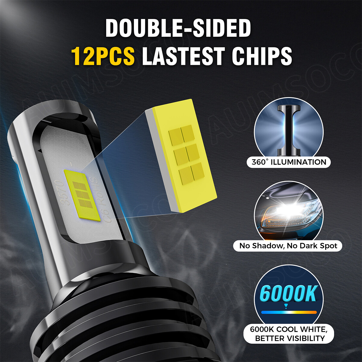 Features: ✅ Quick and Easy Installation: This led light set is one-to-one to restore the original halogen bulb design, directly replace the original halogen bulb, plug and play, easy to install, without any extra actions. ✅ 99% Vehicle Compatibility: Bulbs have a built-in driver and CANBUS-ready design making it compatible with 99% of vehicles on the market. Please note that there are some special models that require an additional CANBUS decoder anti-flicker harness. ✅ Optimum Beam Pattern: 1:1 filament design same as halogen bulbs, customzied led chips, same output as halogen bulb with a clear cut off line. No blind oncoming traffic. ✅ 300% Brighter: AUIMSOCO LED bulbs adopt the latest 2024 LED chip technology, providing 40000 lumens of light output per set, 6 times brighter than halogen bulbs. These 6500K cool white lights provide clear vision, enhancing nighttime road visibility for safe driving on dim and remote roads. ✅50000 Hours Lifespan : High efficiency cooling system separates the power supply and the bulbs body, increaseing more cooling efficiency and extending service life up to 7 years, which is 7 times of halogen bulbs Specification: Brand: AUIMSOCO Condition: 100% Brand New Model: 9005 9006 Lighting Technology: LED Color Temperature: 6500K Suitable For: Headlight, High Beam, Low Beam Lifespan: 50,000 hours Waterproof Rate: IP68 Warranty: 5 years warranty Voltage: DC 12-24V Number of Bulbs: 4 Fitment Type: Direct Replacement Beam Pattern: 360° Adjustable Placement on Vehicle: Front, Left, Right Features: Easy installtion, CAN bus Compatible, Road Legal, Rust-Resistant Operating Temperature: -40℃~+90℃ Package Included: 2x 9005 High Beam +2x 9006 Low Beam Install Caution: As a safety precaution, make sure that the car has had time to cool down properly before starting the installation process. Put the vehicle into park or make sure it is securely in gear. Make sure to have the ignition turned off and the keys removed. Be careful to avoid burns, especially when turning on or off the vehicles lighting. Make sure to not touch the bulbs with your fingers, as this will cause blotting. Fully examine the connection of the contact points, ports and the wires as faulty connections can cause lighting problems. Make certain that the end of the bulb does not come in contact with the interior light shield of the headlight when adjusting the bulbs