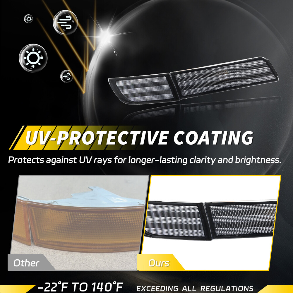 Product Detail Copyright©MotoringPlus Details This page features two Pair (4 Pieces) Clear Lens Front Bumper Turn Signal Lights & Side Marker Light Kit For 1991-1995 Toyota MR2 / MR-2 SW20 (For US SPEC only) These lamps are made with high-quality Polymethy l Methacrylate (PMMA) and Polycarbonate (PC) plastics No modification required! Each piece is easy to install with an OEM fit, Instantly transform your car and give it a modern and trendy appearance and feel! Note: Bulbs & socket adapters are NOT included Specifications: 100% Brand new and quality Lens Color: Clear A complete set of four lamps, replacement for the driver side & passenger sides Compatible With 1991-1995 Toyota MR2 / MR-2 SW20 (For US SPEC only) Directly replace or repair your car's front bumper turn signal lamps & front side marker lamps CE DOT SAE approved Application: For 1991 1992 1993 1994 1995 Toyota MR2 / MR-2 SW20 (For US SPEC only) Replace OEM # Side Marker Light Left Side-8174017020, 81740 17020, 81740-17020; Right Side- 8173017030, 81730 17030, 81730-17030 Replace OEM # Turn Signal Light 81521-17090 81511-17090 81610-17020 81620-17020 Please make sure you have available space in your car for these lamps to fit before placing or der. Package include: 2PCS Driver & Passenger side Front Bumper Turn Signal Lights ( Clear Lens) 2PCS Driver & Passenger side Front Side Marker Lights ( Clear Lens) Installation: Direct replacement the OEM parts without any modification needed Note: Professional installation is highly recommended! Returns Policy Shipping Policy Payment Method About US Contact Us Returns Policy Please check actual stock bulb model & housing size before purchasing replacement bulbs. Compatibility list on eBay listing is not a complete list and it is a known issue that there are errors on it. Half year warranty from the purchased date. Please contact us via ebay message before returning the defectived item. Our warranty does not extended to any products that are physically damaged or that are not under normal operating conditions as a result of misuse or improper installation on the buyers/user's part. Return items should include the original packaging and all accessories. Buyers MUST contact us for the returning address. In all cases, buyers pay shipping fees at their own cost to return products for exchange or refund. We will be responsible for the postage of replacements. Refund will be made upon receipt of the returned item. Our goal is to make sure you are a happy buyer and pleasant shopping with us. If you have any problems, please contact us immediately before leaving us any negative or neutral feedback. We understand the concerns and frustrations you might have, and will do our endeavor to resolve the issues. Please give us the opportunity to resolve any problem. Shipping Policy Item will be shipped from China / Hongkong Post by Standard International Post. All orders will be shipped to buyer's paypal shipping address within 24 hours after receiving your verified payment (Excluding Weekends and Public Holidays) International order may takes about 15-25 business day delivery time for most countries. Transactions on weekends or public holidays,item will be sent later on work time. Payment Method We accept Paypal ONLY. Unpaid transaction will be cancelled after 8 days About US Contact Us We are dedicated to providing you the best shopping experience and high quality items at a very low price. If you are satisfied with our service,Please remember to leave us 5 STAR for All Detailed Seller Ratings If you found any problem/issue of our merchandise/service,please let us know before leaving any negative feedback! Please feel free to contact us if you have any question. Any message will be replied within 24 hours. We will try our best to help! Home Payment Shipping About us Contact us Copyright©MotoringPlus Home Payment Shipping About us Contact us Store Categories Store Categories SIDE MARKER LIGHT TURN SIGNAL LIGHT TAIL BRAKE LIGHT LICENSE PLATE LIGHT DECODER OTHERS Other Product Detail Copyright©OFFKAT Why Buy From Us Why Buy From Us Details This page features two Pair (4 Pieces) Clear Lens Front Bumper Turn Signal Lights & Side Marker Light Kit For 1991-1995 Toyota MR2 / MR-2 SW20 (For US SPEC only) These lamps are made with high-quality Polymethy l Methacrylate (PMMA) and Polycarbonate (PC) plastics No modification required! Each piece is easy to install with an OEM fit, Instantly transform your car and give it a modern and trendy appearance and feel! Note: Bulbs & socket adapters are NOT included Specifications: 100% Brand new and quality Lens Color: Clear A complete set of four lamps, replacement for the driver side & passenger sides Compatible With 1991-1995 Toyota MR2 / MR-2 SW20 (For US SPEC only) Directly replace or repair your car's front bumper turn signal lamps & front side marker lamps CE DOT SAE approved Application: For 1991 1992 1993 1994 1995 Toyota MR2 / MR-2 SW20 (For US SPEC only) Replace OEM # Side Marker Light Left Side-8174017020, 81740 17020, 81740-17020; Right Side- 8173017030, 81730 17030, 81730-17030 Replace OEM # Turn Signal Light 81521-17090 81511-17090 81610-17020 81620-17020 Please make sure you have available space in your car for these lamps to fit before placing or der. Package include: 2PCS Driver & Passenger side Front Bumper Turn Signal Lights ( Clear Lens) 2PCS Driver & Passenger side Front Side Marker Lights ( Clear Lens) Installation: Direct replacement the OEM parts without any modification needed Note: Professional installation is highly recommended! Returns Policy Shipping Policy Payment Method About US Contact Us Returns Policy Our 60-day Satisfaction Guarantee assures our customers that they will receive all orders promptly and exactly as described. In addition, it allows customers to return new and unused products in their original factory condition for any reason within 60 days from the date of purchase. Buyers are responsible for appropriate packing, retu