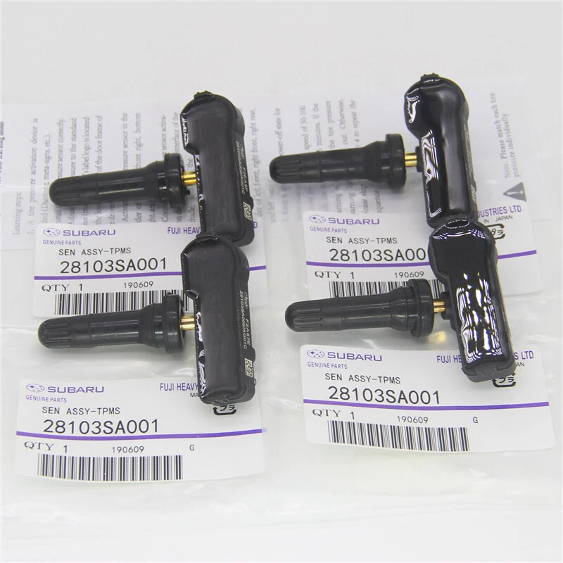 4X Genuine OEM TPMS Tire Pressure Sensors 28103SA001 28103AJ00A For Subaru WRX Part Number: 28103SA001 28103AJ00A Package Includes: 4PCS 28103SA001 TPMS Tire Air Pressure Sensors Fitment : Subaru; Crosstrek; 2016 - 2017 Subaru; Forester; 2008 - 2018 Subaru; Impreza; 2008 - 2016 Subaru; Impreza WRX; 2008 - 2014 Subaru; Impreza WRX STi; 2008 - 2014 Subaru; Legacy; 2008 - 2017 Subaru; Outback; 2008 - 2017 Subaru; Tribeca; 2008 - 2014 w/Rubber Stem Snap-in Sensor Subaru; WRX; 2015 - 2019 Subaru; WRX STi; 2015 - 2019 Subaru; XV Crosstrek; 2013 - 2015 Payment Delivery details Return policy About us Contact us Payment Local Service! / 30 days Return Policy / Answer within 24 hours! Delivery details 1 .Our orders are usually shipped within 1-2 working days after payment received unless there are problems with the order. If this case happened, we will contact you via your eBay email address or telephone number. 2.Normally orders are processed on working day. Return policy 1.We offer 30 days return policy. Please contact us within 14 days from the date you receive your order if you have any issues with the product and would like to return. 2.All returned items MUST BE in the original packaging and please provide us with the shipping tracking number, specific reason for the return, and your eBay ID. 3.We will refund YOUR FULL WINNING BID AMOUNT, upon receipt of the item in its original condition and packaging with all components and accessories included. 4.Buyer is responsible for return shipping cost. 5.If we send the wrong item to you, please contact us and we will take full responsibility and fix it soon. About us Why Buy From Us? - Fashion Design, Quality Orientied, Best Service - US Based Seller, US Stock - Fast Dispatch & Delivery - Free 30 Days Return Policy Contact us We strive for 100% customer satisfaction! Positive Feedback is very important to us. If you have any questions, please feel free to contact us via "Ask seller a question" . We will reply your email within 24 working hours:) Brand OEM Interchange Part Number 28103AJ00A, 28103-AJ00A, 28103AG01B, 28103SA001 Sensor Type Tire Pressure Monitoring Sensor OE/OEM Part Number 28103SA001 Manufacturer Warranty Lifetime Manufacturer Part Number 28103SG000, 28103-SG000 Features Direct Fit, Easy Installation Superseded Part Number 28103AJ00A, 28103-AJ00A, 28103AG01B, 28103SA001 Placement on Vehicle Front, Left, Rear, Right