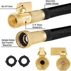 4X Stronger Deluxe Expandable Flexible Garden Water Hose Pipe 25,50,75,100,150FT 4X Stronger Deluxe Expandable Flexible Garden Water Hose Pipe 25,50,75,100,150FT Feature: Expandable Hose: The features a revolutionary expendable and collapsible design, automatically expanding up to 4x larger when water pressure rises, and shrinking to compact size when water pressure reduces, allowing for effortless storage while providing ultra-effective usage. Multifunctional Spray Nozzle: Our water nozzle with 8 patterns offers more spraying choices. The rubberized outer coating is non-slip and comfortable. The rotating bezel is easy for choosing different patterns. The buckle is designed for uninterrupted use. Ergonomic handgrip is for effortless operation Ultra-Lightweight: The hose is comprised of nylon weaving weighting up to 50% lighter than regular commercial hoses while providing ultimate flexibility and a hassle-free experience. Heavy Duty: The Hose is extremely durable and resistant to leaks, punctures, and drags over tough surfaces, ensuring your hose stays good as new for years to come. Weatherproof: Built to last years, the hose is completely weatherproof and able to withstand the most extreme temperatures- Fires, storms, subzero temperatures, and more-without a scratch, allowing the hose to last for years on end. Crush Resistant: The hose features solid brass crush resistant fittings and a stabilizer engineered to withstand the most extreme force outputs while keeping its shape, preventing the nozzle from getting crushed. Worry free after-sales service: If you have any questions, please feel free to contact us and we will provide you with 100% service. INSTRUCTIONS: 1️⃣ Before using your HOSE place the rubber washer firmly inside the female coupling. This will prevent leaking. When using the HOSE for the first time, it is recommended to first fill and extend hose and slightly stretch hose to release tightness in outer folded material covering. Then release water and refill to use normally. 2️⃣ Attach the female end of the HOSE to the water source. 3️⃣ Attach the supplied on/off valve to the male end of the HOSE. 4️⃣ Tur the on/off valve to the OFF position. 5️⃣ Turn the water on at the source. Gradually increase the water pressure.The HOSE will automatically expand up to 3 times its original length. 6️⃣ When the HOSE is fully expanded turn the on/off valve to the ONposition. You can now use the HOSE like any ordinary hose 7️⃣ When you are finished using the HOSE, turn the water OFF at the source spigot. 8️⃣ Allow the water in the HOSE to drain by turning the on/off valve to the On position. If you are using a nozzle then open the nozzle. As the water begins drain, the HOSE, it will automatically contract back to its original length. NOTE: if you are using a sprinkler that is NOTattached to the ground, (such sa an oscillating sprinkler). when you turn the water OFF, your sprinkler may be dragged a short distance as the HOSE contracts back to its original length. This should not harm your HOSE or your sprinkler. NOTICE: ❗ This hose is intended for routine watering applications ❗ Do not run hot water through this hose ❗ Do not leave the water turned ON and the hose under pressure when not in use. ❗ Drain your hose in the summer when you are not using it and keep it shaded as much as possible. ❗ Protect your hose from harsh winter weather by storing it indoors. Be sure to drain the hose completely before storage as water remaining in the hose can freeze, damaging the hose. WARNING !!! THE HOSE ISNOTINTENDED FOR DRINKING WATER USE This hose is not suitable for drinking water. The HOSE is a tool that is used and stored outdoors and can be exposed to conditions that can be harmful to humans such as: Mold & bacteria Lawn and Garden chemicals Animal waste Insects Stagnant water Other harmful substances THE HOSE ISNOTATOY Do not stretch or expand this hose when it is empty. The Hose is intended to expand only when the water is turned on. This hose can stretch to up to three times its "relaxed" or original length and if it is stretched with NO water in it and accidently released, it will quickly snap back and could cause personal injury. Specifications: Item Type: Garden Water Hose Kit Application: Car Washing, Garden Watering, House Cleaning Hose Thread: 3/4"(American standards) Material: Latex + Woven Fabric + Copper Plated Aluminum Alloy + Plastic Color: Black , Blue , Green Hose Length(After Expansion): 25FT , 50FT , 75FT , 100FT , 150FT (Optional) Package Include: 1 x 25/50/75/100/150FT Garden Hose 1 x Nozzle 3 x Washers 1 x Hanger 1 x Storage Bag FEEDBACK 1.We are dedicated to offer you top quality items with best service, it will be greatly appreciate if you leave your positive feedback. 2.If you were not totally satisfied, please give us a chance to resolve the problem before you leave a negative feedback or open a case. 3.We care about our valued customers and understand the concerns and frustrations you might have and will try our best to help you. 4.If you have any questions, please contact us any time, we'll reply you within 24 hours in working days. Thank you. Payment Delivery details Terms of sales About us Contact us Payment 1.We accept PayPal/credit/Gpay 2.All payments must be received within 10 days after auction won 3.Non-pay bidder will get a negative feedback and an unpaid alert from eBay 4.E-checks via Paypal will be hold until it is cleared Delivery details Most Items Free Shipping within the 48 States. We ship within the United States only. The term EXCLUDES the states of Alaska, Hawaii and all off-shore U.S. territories and possessions such as Puerto Rico, Guam and Virgin Islands. We do not ship to APO and FPO . Delivery Time: 4-7 business days (Varies by Destination) Shipping Carriers are responsible on the delivery time. If you have any questions or problems with delivery, please contact carrier directly Standard Order Processing tim