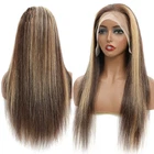 4X4 13X4 Lace Frontal Human Hair Wigs 180% Density Bone Straight Ombre Highlight Colored HD Lace Front Wig 32 Inch Lace Closure