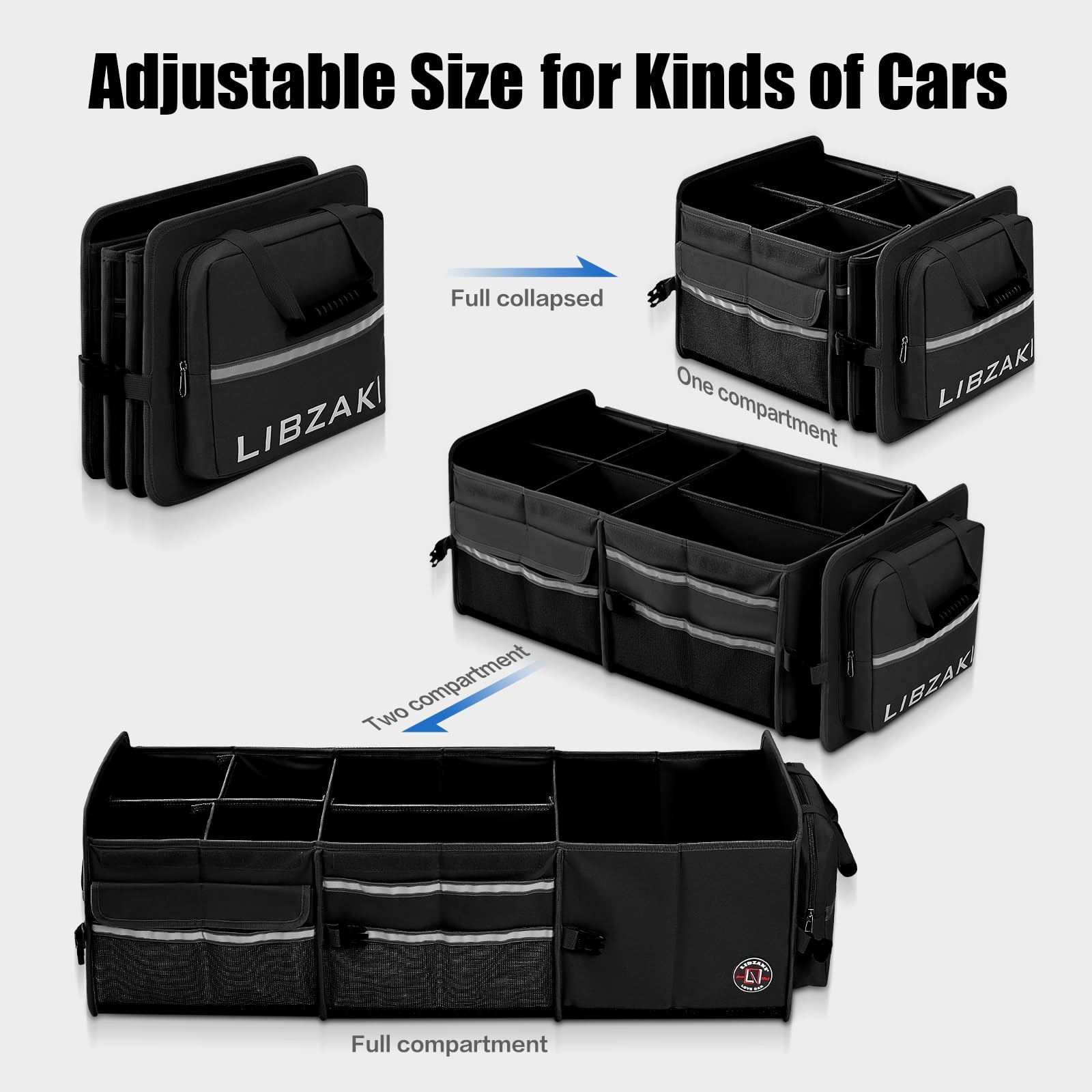 LIBZAKI Oversize 4 in 1 Car Trunk Storage Organizer, Multi Compartment Collapsible Trunk Storage Box with Cooler Bag for Car Truck SUV-Black Ultra-large Capacity: When fully unfolded, the LIBZAKI Trunk Organizer measures 35" x 13.8" x 11.8" (L x W x H) with a capacity of 95L. It fits cars, trucks, jeeps, and minivans, keeping your vehicle clean and organized. Perfect for shopping, camping, or home storage, it meets all your travel and storage needs. Fine Quality Material: Constructed with premium thicker cardboard and 600D dense Oxford cloth, this car storage bin is wear-resistant, stain-resistant, waterproof, and odorless. Reinforced with thick partitions and featuring excellent sewing, it offers superior stability and can bear up to 30kg (66 lbs), ensuring durability. High Usability: The Cargo Organizer Trunk includes numerous partitions to hold groceries, tools, cables, and work materials. It can be configured as one or two boxes or folded flat when not in use. With a large pocket on the right, five side pockets, and two mesh pockets, it provides easy access to items. Reflective strips on the front and side offer added safety as emergency warnings. Detachable Ice Bag: The trunk organizer includes a detachable ice bag, which can be carried on the back or shoulder. It keeps food warm or cold for 8-24 hours with its waterproof zipper and high-quality interior. Ideal for kayaking, beach trips, and camping, it keeps ice and drinks cool for a refreshing trip. Innovative Design: LIBZAKI prioritizes customer experience with a unique storage bin designed to meet personalized needs. Available in vibrant black, gray, pink, rose red, and blue, it makes an excellent gift for relatives and friends. A whole piece of non-slip cloth is at the bottom to prevent the product from slipping randomly. Wary of hauling food and drinks in your brand new car? It’s not like you can avoid putting snacks in your car forever! What trip to the beach is complete without something to munch on? And that’s not even mentioning how you might need the car for carrying groceries or cleaning supplies. You just need to find a way to safely transport these items without making a mess in your ride. Thankfully, we’ve got an awesome solution to that challenge. Keep your ride spotless with the LIBZAKI Trunk Organizer! Our car trunk organizer is an all-in-one storage solution for your vehicle. It has been specially designed to fit in your car. It features 3 extra-large compartments with removable dividers to keep certain items from touching. The side and flap pockets are perfect for storing small items like electronics or documents. Want to keep your drinks nice and chilled? Forget lugging around a huge icebox. The removable cooler bag that comes with our product is exactly what you need. It is fully insulated and boasts a leakproof liner, so the rest of your stuff won’t get wet from condensation. Never deal with spilled liquids in your car again! The non-slip pads at the bottom of our organizer keep it from sliding around while you’re driving, and it even comes with tie-down straps for added security. Here are other reasons to love our car trunk organizer: ✅ Both the organizer and cooler can be folded flat when not in use ✅ Soft, durable carry handles that don’t overheat under the sun ✅ White reflective strip for outdoor use Rev up every journey and adventure. Add the LIBZAKI Trunk Organizer with Leakproof Cooler Bag to your cart today! Shipping We offer FREE shipping on all orders! We ship within Three business days of payment, usually sooner. We use a selection of shipping services such as UPS, FedEx, USPS etc. We only ship to the lower 48 states, no APO/FPO addresses or PO Boxes allowed. Local pickups and combined shipping options are not provided at this time. Return You can return a product for up to 30 days from the date you purchased it. Any product you return must be in the same condition you received it and in the original packaging. Please keep the receipt. Payment We accept payment by any of the following methods: PayPal Please pay as soon as possible after winning an auction, as that will allow us to post your item to you sooner! Feedback Customer satisfaction is very important to us. If you have any problem with your order, please contact us and we will do our best to make you satisfied. Contact Us If you have any queries, please contact us via ebay. We usually respond within 24 hours on weekdays. Please visit our eBay store to check out other items for sale! Thank you for shopping at our store.