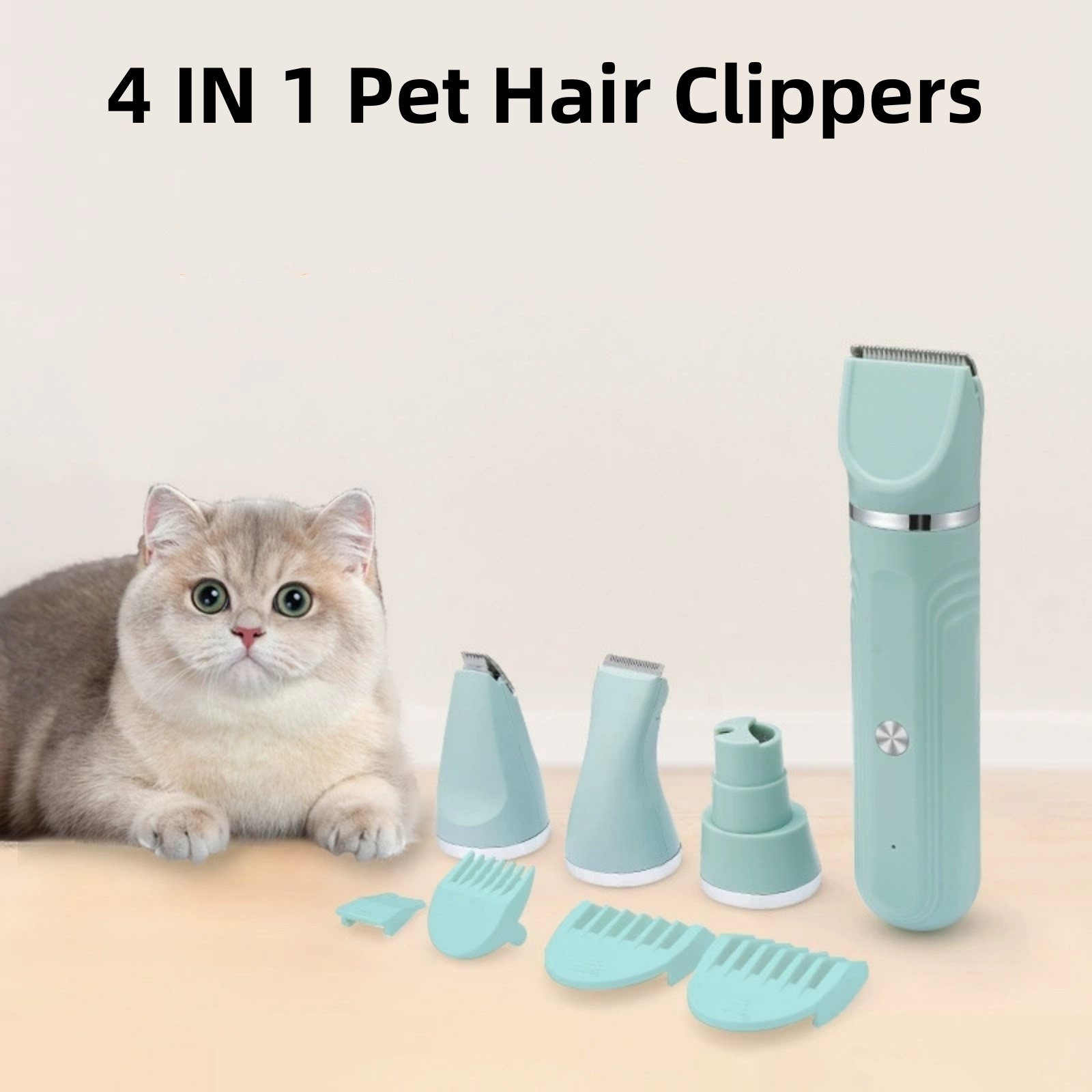 Features: 1. Professional Electric Pet Hair Groomer, Hair Clipper, Cordless Dog And Cat Grooming Razor 2. This Is A 4-In-1 Multi-Functional Pet Groomer With Multiple Heads: Standard Head, Narrow Head, Fine Head, Nail Clippers 3. Simple Body And Comfortable Operation, Round Blades Won'T Hurt The Skin, Full Grooming Of All Parts, Invisible One-Touch Button. 4. Built-In High-Capacity Lithium-Ion Battery For Longer Use, So You Can Groom Your Pet Anytime, Anywhere. 5. Simple Replacement, Easy To Replace The Blade, Just Pull Out And Fasten It, Save Time And Energy Specification: Material: Plastic+ABS Charging: USB Charging About 2-3H Use Time About: 50 Minutes Suitable For: All Pets Package Included: 1x Pet Hair Clipper 4x Multi-Specification Blades 4x Group Limiting Comb 1x Cleaning Tool 1x USB Cable