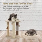 4 in 1 cat tree:Scratching post Cat bed Hanging ball toy Beauty massage brush multiple functions.Meet the cat's daily play, claw grinding, grooming, rest and other activities.A place to play for a long time, addressing multiple needs.Ideal for families with 1-3 cats. Protect the furniture:Sisal, jute, and carpet three materials, three scratch posts for cats to satisfy their natural instincts to claw.Helps keep your cat from damaging carpets, furniture, curtains, and more. Toys and cat Tower beds:Three Hanging balls.Attract cats to slap.Get them used to the toy faster.Massage brush lets them self comb.Collect excess hair and keep it hygienic.A nest-like cat nest is a great addition.Meet your cat's need for a long sleep. Stability and dimension:20.5 inches high.Base is 16 inches in diameter.The large base keeps the column stable.Column is 2.6 inches in diameter.A triangular structure formed by three pillars.Very solid. Easy assembly: We provide a complete set of installation tools and instructions that will let you assemble in minutes. If you have any questions, please contact us and we will give you a satisfactory answer within 24 hours.