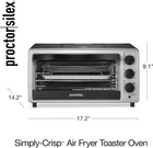 About this item POWERFUL AIR CIRCULATION FOR EVENLY BROWNED FOOD WITH LITTLE TO NO OIL: The Simply-Crisp air fry convection function* circulates air around food as it cooks, creating crispy and delicious fries, chicken wings, steaks, fish, vegetables and more. AIR FRYER CONVECTION OVEN WITH 4 VERSATILE COOKING OPTIONS: You get the convenience and deliciousness of crispy air frying* along with all the classic toaster oven functions you love: bake, broil and toast. LARGE 6 SLICE CAPACITY PROVIDES PLENTY OF COOKING SPACE: This toaster oven with air fryer has plenty of room for everything from 6 slices of bread to a 12" pizza, 5 lb. chicken or a 9" x 11" bake pan and has 3 rack positions for flexibility. INCLUDES MESH BASKET FOR AIR FRYING, BAKE PAN AND BROIL RACK: The air fryer oven comes with everything needed to air fry, bake, broil and toast, plus a slide-out crumb tray. Mesh basket fits on the upper oven rack with bake pan below to catch drippings. EXCELLENT COOKING PERFORMANCE: Quality heating elements provide precise temperatures from 150 ° F to 450 ° F and even cooking without hot spots. The air fryer oven combo is easy to use and has a 30 minute timer, Stay On function, ready bell and auto shutoff. Air fry feature may require more cooking time than standalone air fryers