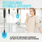 [4-in-1] Water Bottle Brush and Straw Cleaner Set, Stainless Steel Long Handle Baby Water Bottle Brush for Sports Bottles, Mugs, Cutlery, Coffee Mugs, Glassware, Wake-Ups. Made with high-end odorless nylon bristles, stainless steel handles and PP plastic grips, this bottle cleaning kit is comfortable and sturdy enough to clean all water bottles and mugs with confidence. Our sponge brushes are made of carefully selected sponges, reusable, please wash with soap and water after each use, specially treated foam sponges have good water absorption. 15 Inch Long Handle Bottle Brush and Straw Cleaner Set with soft, pliable bristles that reach deep into any bottle and glass less than or equal to 15 inches for a deep clean that lasts longer than regular bottle cleaners. The cleaning brush easily fits into a variety of water bottles, insulated mugs, travel mugs, baby bottles, coffee cups and mugs, vacuum flasks, narrow containers, kitchen dishes, sinks, and a variety of pots and pans, making it easier for you to clean and your family to rest assured.