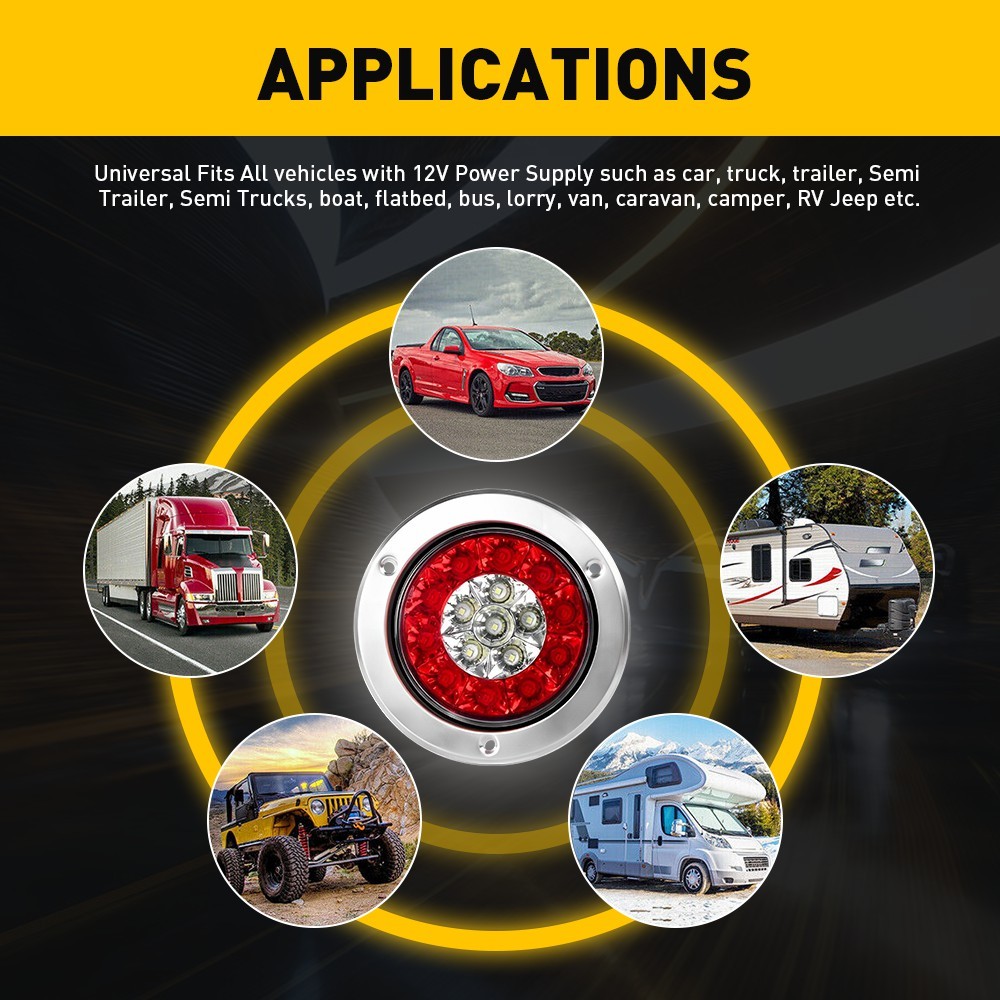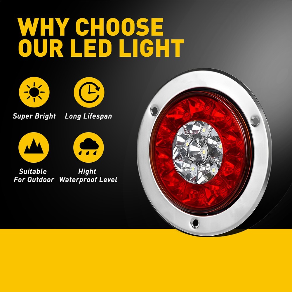 Pair LED Round Truck RV Trailer Tail Light Stop Rear Running Brake Reverse Lamp Specification Light color:red+white Material: ABS & Stainless steel Voltage:12V-24V Waterproof grade:IP67 Service life: 50000H+ Light color: Red(10 leds),white(6 leds) LED quantity: 16 LEDs per unit Features: *High brightness: Adopts 16 pieces of advanced LED lamp beads glowing brightly but not dazzlingly. 100% Brighter than halogen bulbs but more Energy-saving. *Waterproof: The tail light is highly silicon sealed with an IP67 waterproof rating, which works even under extreme conditions such as rain and snow. *Easy to install: 4inch Round Red White 16-LED Truck Trailer Brake Stop Turn Signal Tail Lights Pair LED Round Truck RV Trailer Tail Light Stop Rear Running Brake Reverse Lamp Specification Light color:red+white Material: ABS & Stainless steel Voltage:12V-24V Waterproof grade:IP67 Service life: 50000H+ Light color: Red(10 leds),white(6 leds) LED quantity: 16 LEDs per unit Features: *High brightness: Adopts 16 pieces of advanced LED lamp beads glowing brightly but not dazzlingly. 100% Brighter than halogen bulbs but more Energy-saving. *Waterproof: The tail light is highly silicon sealed with an IP67 waterproof rating, which works even under extreme conditions such as rain and snow. *Easy to install: Easy installation with direct replacement, other modifications are not required. *Connection Black wire connects to negative. Red wire:Braking light (Red light with high brightness) Blue wire:Driving light(Red light with low brightness) White wire:Reversing light(White light) *Functions Tail Light, Running Light, Stop Light, Reverse Lamp, etc. *Wide application: Universal Fits All vehicles with 12V Power Supply such as car, truck, trailer, Semi Trailer, Semi Trucks, boat, flatbed, bus, lorry, van, caravan, camper, RV Jeep etc. Note: Please check the detail information carefully before purchasing. Your satisfaction is our utmost concern, please feel free to contact us for any questions and concerns. Package Include: 2/4/6/8/16X Tail light Note: 1.Please allow 1-2cm differs due to manual measurement. 2.The real color of the item may be sligtly different from the pictures shown on website caused by many factors such as brightness of your monitor and light brightness. 3.For any questions please feel free to contact us. 4.Please check your car model before purchasing!!! Item Specifics Brand Unbranded Bulb Fitment Code 4 Inch Bulb Life Hours Up to 5,000 Hours Color Temperature Red/White Features Ballast Included LED color White&Red Life time 50000 Hrs Light Color Red Light Colour White,Red Light Size 4 Inch Light Source 16pcs LED Lighting Technology LED Manufacturer Part Number Does Not Apply Manufacturer Warranty 1 Year Material stainless steel and ABS plastic Model Round LED Tail Light Number of Bulbs 16 Performance Part Yes Size Round 144mm=5.6in (inner 4inch) Suitable For Brake Light, Tail Light, Turn Signal Light Type Tail Light Universal Fitment Yes Vintage Car Part Yes Vintage Part Yes Voltage 12-24V DC Waterproof IP65 Wire 4lines Payment Returns DESCRIPTION PAYMENT SHIPPING RETURN POLICY CONTACT US Shop Category Store Home LED Headlight ◈ H4 ◈ H13 LED Reverse Light ◈ T15/921/W16W LED License Plate Light LED Side Marker Light Car Parts & Accessories Tail Light assemblies Other Hot Item Picture New List Item LED Headlight Bulbs Combo 9005 Kit H11 High Low Beam White Super Bright 1-10Set USD 46.99 2x H7 Super Bright LED Headlight Bulbs Conversion Kit High Low Beam 6500K White USD 29.29 DRL Day Time LED Running Light Bulbs 3157 3156 3057 4000LM Bright White 1~10Set USD 12.99 LED 3RD Tail Brake Light Cargo Fit For 99-07 Silverado/Sierra 1500 2500 3500 US USD 25.99 AUXITO LED 50W White Up Back Reverse Light Bulb 2800LM 7443 7440 Projector 2Set USD 27.29 Help & Info Payment Policy Shipping Policy Return Policy FAQ About Us 4inch Round Red White 16-LED Truck Trailer Brake Stop Turn Signal Tail Lights Pair LED Round Truck RV Trailer Tail Light Stop Rear Running Brake Reverse Lamp Specification Light color:red+white Material: ABS & Stainless steel Voltage:12V-24V Waterproof grade:IP67 Service life: 50000H+ Light color: Red(10 leds),white(6 leds) LED quantity: 16 LEDs per unit Features: *High brightness: Adopts 16 pieces of advanced LED lamp beads glowing brightly but not dazzlingly. 100% Brighter than halogen bulbs but more Energy-saving. *Waterproof: The tail light is highly silicon sealed with an IP67 waterproof rating, which works even under extreme conditions such as rain and snow. *Easy to install: Easy installation with direct replacement, other modifications are not required. *Connection Black wire connects to negative. Red wire:Braking light (Red light with high brightness) Blue wire:Driving light(Red light with low brightness) White wire:Reversing light(White light) *Functions Tail Light, Running Light, Stop Light, Reverse Lamp, etc. *Wide application: Universal Fits All vehicles with 12V Power Supply such as car, truck, trailer, Semi Trailer, Semi Trucks, boat, flatbed, bus, lorry, van, caravan, camper, RV Jeep etc. Note: Please check the detail information carefully before purchasing. Your satisfaction is our utmost concern, please feel free to contact us for any questions and concerns. Package Include: 2/4/6/8/16X Tail light Note: 1.Please allow 1-2cm differs due to manual measurement. 2.The real color of the item may be sligtly different from the pictures shown on website caused by many factors such as brightness of your monitor and light brightness. 3.For any questions please feel free to contact us. 4.Please check your car model before purchasing!!! Payment Returns All rights reserved. On Aug 16, 2025 at 10:16:34 PDT, seller added the following information: