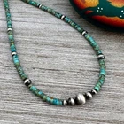 4mm Kingman turquoise with 4mm to 8mm sterling silver beads, Southwest Pearls. The silver beads have been darkened (oxidized) and then polished by hand, leaving the edges dark. This item is made to order. Production time is 1-3 business days. Timeline is dependent upon current volume of orders. Most orders ship in one day. If you have a specific deadline, please contact me before purchasing so your expectations can be met. Everything in the shop is real turquoise and sterling silver. Nothing is plated. You are purchasing one necklace necklaces are measured from end to end choose your length in the drop down box lobster clasp The beads are strung on a strong and flexible, nylon coated, 49 strand stainless steel, professional beading cable Powered by ExportYourStore.com