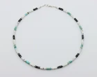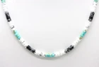 This Native American inspired beaded heishi necklace is made with natural white buffalo turquoise from Nevada, blue green turquoise from the Kingman Turquoise Mine in Kingman Arizona and black obsidian with gray highlights, and sterling silver spacer beads. The beads are uniform in size, making for a clean flowing pattern of semi precious gemstones. Modeled in both 18" and 20". The AAA grade white buffalo turquoise beads are beautiful shades of gray and white polished to a fine quality semi gloss luster that compliments that of the green turquoise and black obsidian. White Buffalo Turquoise This rare white turquoise is actually white in color while still being turquoise. It is the most spiritual of all the turquoise colors. While containing all of the colors on the spectrum, it represents enlightenment, knowledge, and transformation. As a Healing Stone, the color alone is not specific to any one chakra. Rather, it covers all of them. Blue Arizona turquoise was originally discovered by prehistoric Native Americans over 1500 years ago. The superior properties of Arizona turquoise sets the standard for quality worldwide, as all turquoise is measured against that of the southwestern USA. Arizona turquoise is known for it's pure clean colors that range from bluish green to sky blue. The many variants of green and blue turquoise are known for the finest matrix patterns of pure turquoise with often little to no markings, webbing, or matrix, making it very valuable and sought after. Arizona turquoise is mined from the many rugged copper rich mountain turquoise mines of the Arizona American Southwest. Turquoise captures the magic and mystery of the ancient Southwest. Here is a interesting fact about the color of Arizona Turquoise. The base mineral giving turquoise its beautiful blue hue is copper. It is iron that gives turquoise its green coloring. Greenish blue turquoise is most often found in the upper turquoise formations, where blue turquoise is more often found deeper within the formations. Turquoise is known to be the purification stone of peace and serenity, a gentle guiding light that inspires self-care and self-confidence. Obsidian is a volcanic mineral that forms in Volcanos. The black and gray obsidian is native to the southwestern United States. It comes from the rapid cooling of felsic lava. Obsidian is naturally black in color and has a glassy texture and a vitreous luster. There are several shades of Obsidian including rainbow, snowflake, gold, and mahogany. Obsidian is hard and was commonly used for tools. The meaning of Obsidian is safety and grounding. Dark and dreamy, the volcanic glass rock of Obsidian is a sword against negative energy and a powerful anchor for keeping you grounded in this good life. - 100% natural color, not dyed, treated or color enhanced. - Photos taken outside in natural lighting and in a light box. - No filters or color enhancements are added to the photos. The necklace is strung with premium strong 49 micro woven stainless steel beading wire with nylon coating. I use only the finest brightly polished sterling silver and gold filled findings. A large clasp that is easy to hold and open completes this necklace. I offer this in lengths; choker 14" - 28". Please select your size and finish from the drop down menu. A 2" necklace extender is included, so you can adjust the necklace and wear it at different lengths. Please message me if you would like the necklace without the extender. * Unisex styling, suitable for a man or woman and would make a perfect gift! * This necklace is completely handmade and constructed in my studio. * All pieces purchased come ready for gift-giving *Shipping on this item is within 3 days of receiving payment. *Standard Shipping to U.S. Addresses: Orders are shipped via USPS 1st class mail and per USPS guidelines, domestic delivery times range between 2-9 days, but in most cases 2-4 business days to the contiguous 48 states. *Standard Shipping to International Addresses: Orders are shipped via USPS 1st class international mail and per USPS guidelines, delivery times range between 10-21 business days. 4mm White Buffalo, Blue Arizona Turquoise, & Black Obsidian Heishi Bead Necklace, Unique Modern Boho Bead Gemstone Hippie Tribal Choker Thank you for visiting!