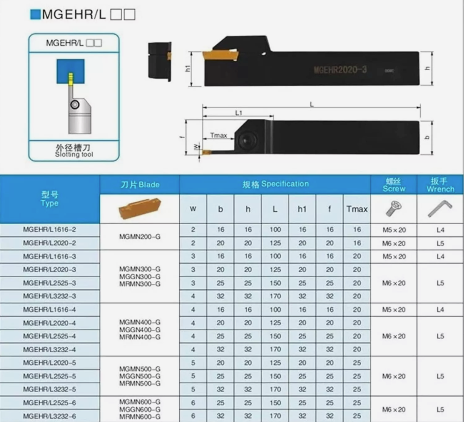 Specification: Brand newModel : MGEHR1616-4 Screw: M5 * 16 Wrench: LT4.0 Handle: around 100 mm Cutting depth: about 16mm Slotting width: about 4mm Model : MGMN400-M Insert Type: Cutt-off insert Material: Hard Alloy Width:4mm Primary Application(s):Steel、stainless steel 、cast iron Color:as the picture shows Coating: PVD Processing type: finishing / semi-finishing Applicable holder type :Lathe turning holder / Cutting tool Packing: 10 pieces in a box
