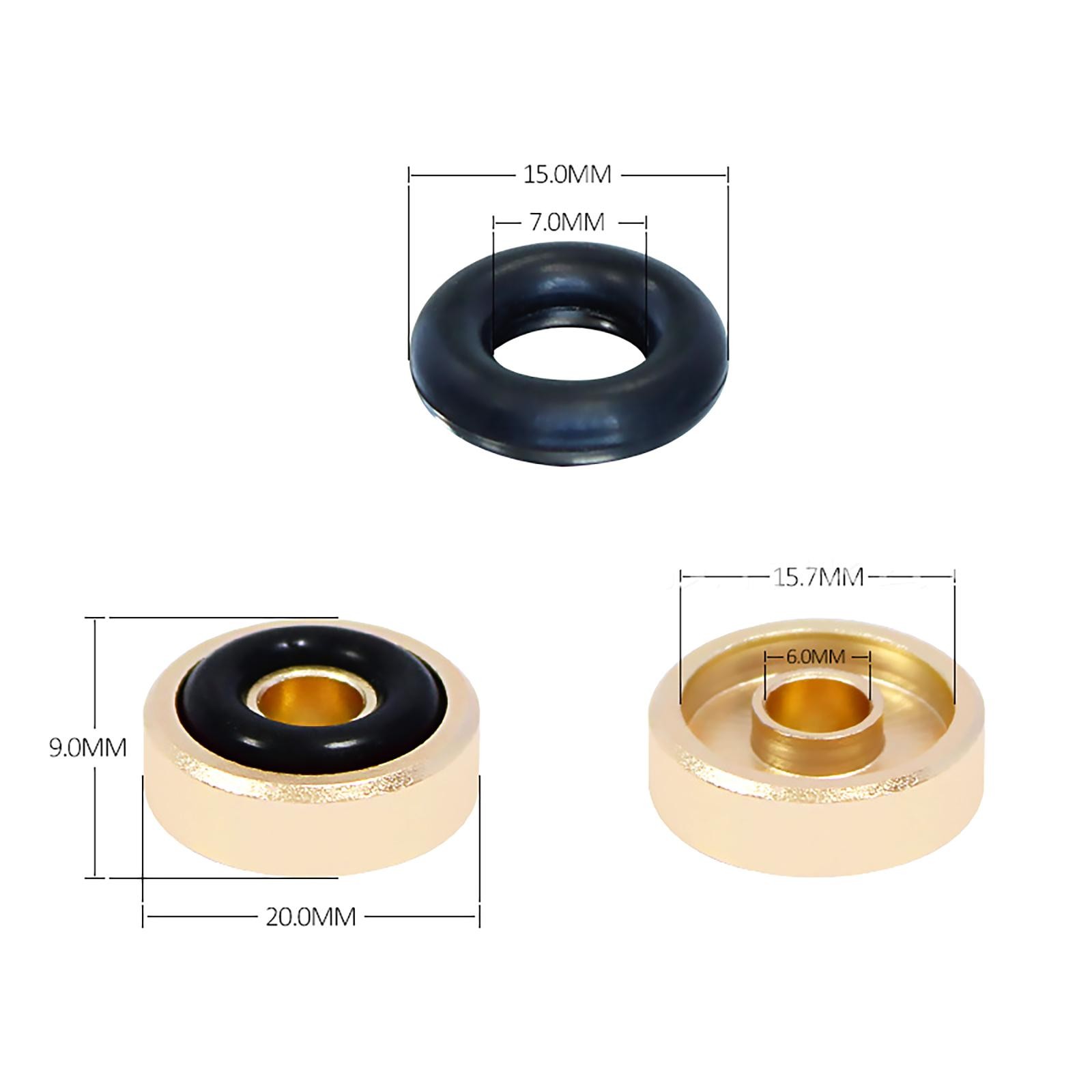 Product Description Features: Made of high-quality aluminium alloy, fadeless and not easy to oxidize. To raise the height of amplifier to help create a real stereo surrounding sound. Amplifier feet to help absorb shock, to protect your amplifier. Rubber ring is detachable, very convenient and easy to use. Durable for a long-time use. Specifications: Type: Amplifier Feet Color: Gold Material: Aluminum Alloy Diameter: 20mm Height: 8mm Screw hole diameter: 3.5mm Surface treatment: Anodizing sand blasting Rubber ring: Detachable Package include: 4 * Amplifier Feet Note: Please allow slight error due to manual measurement. Thanks for your kind understanding. Installation Method: The amplifier feet can be installed from the inside of the chassis, or it can be installed from the outside of the chassis with self-tapping screws (suitable for wooden materials, self-tapping screws need to be self-matching, which means it's NOT included), or for 3M double-sided adhesive (self-matching, also NOT included) Shipping Returns Contact Us Payment 1. Items sent from US warehouse. 2.Receiving time = Processing time + Shipping time 3. Processing Time: Around 1-2 business Days 4. Shipping Time: 3-5 business day it may have a little delay during some holiday (such as Christmas),any problem ,please feel free to contact 1. 30 days warranty from the purchased date. Please contact us via email before returning the defective item. 2.Our warranty does not extended to any product that are physically damaged or that are not under normal operating conditions as result of misuse or improper installation on the buyer/user's part. 3.Return items should include the original packaging and all accessories. buyers MUST contact us for the returning address. 4.In all cases, buyers pay shipping fees at their own cost to return products for exchange or refund. We will be responsible for the postage of replacements. Refund will be made upon receipt of the returned item. Pls contact us if you have any problems,we will try our best to solve for you We accept all verified payment from eBay. Shipping 1. Items sent from US warehouse. 2.Receiving time = Processing time + Shipping time 3. Processing Time: Around 1-2 business Days 4. Shipping Time: 3-5 business day it may have a little delay during some holiday (such as Christmas),any problem ,please feel free to contact Returns 1. 30 days warranty from the purchased date. Please contact us via email before returning the defective item. 2.Our warranty does not extended to any product that are physically damaged or that are not under normal operating conditions as result of misuse or improper installation on the buyer/user's part. 3.Return items should include the original packaging and all accessories. buyers MUST contact us for the returning address. 4.In all cases, buyers pay shipping fees at their own cost to return products for exchange or refund. We will be responsible for the postage of replacements. Refund will be made upon receipt of the returned item. Contact Us Pls contact us if you have any problems,we will try our best to solve for you Payment We accept all verified payment from eBay. You may also like 1Pair Replacement DVD Drive Plastic Roller For Sony PS4 CUH-1000 1100 Axis Shaft 10.85 USD 39.99 USD Mechanical Watch Automatic Mainspring Tool For ETA 2824-2 2836-2 Movement 10.55 USD 39.99 USD 5 Pairs Male + Female MT30 3 Pin Gold Plated Connector 15A Amass 10.85 USD 39.99 USD 10Pack Ribbon Circuit Conductive Film Keypad For PS3 Controller Dual Shock 3 w 12.85 USD 39.99 USD Electric Guitar Neck Plate W/Mounting Screw For Fender Stratocaster Telecaster f 10.85 USD 19.99 USD 1*Stainless Steel Egg Topper Cutter Shell Opener Boiled Raw Egg Cracker Knocker 10.25 USD 19.99 USD powered by