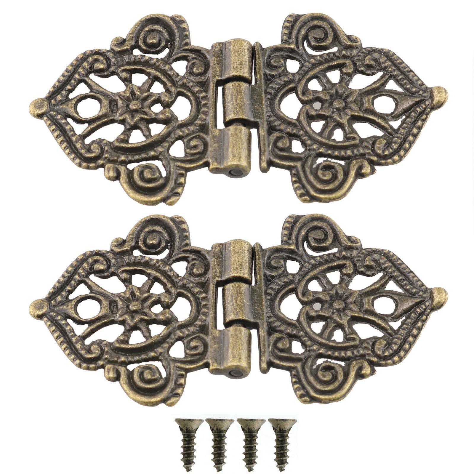 Name: Antique printing zinc alloy hinge furniture Color: green bronze Material: zinc alloy Size: 53*28mm/2.1*1.1inch Single weight: 8g feature: Very suitable for jewelry box repair, model making, storage boxes, etc. The unique mini retro bronze hollow design hinge adds a little retro elegance to your home The package includes: 4 x antique hinges 8 x matching screws Note: Please pay attention to the position of the screw hole when installing the hinge. Material: Made of high-quality zinc alloy, thicker, stronger, more corrosion-resistant, not rusty, beautiful and firm enough to bear enough weight. Size: 1.1 x 2.1 inches. Color: bronze. The unique mini retro bronze hollow design hinge can decorate your box. Not only suitable for all kinds of wooden boxes and jewelry boxes, but also can decorate any decoration of your home, adding a sense of retro elegance. Wide range of uses: suitable for small woodworking projects, smaller jewelry boxes, doll houses, smaller cabinets, drawers and other smaller items. Quantity: 4 Antique Bronze hinges, 8 screws.