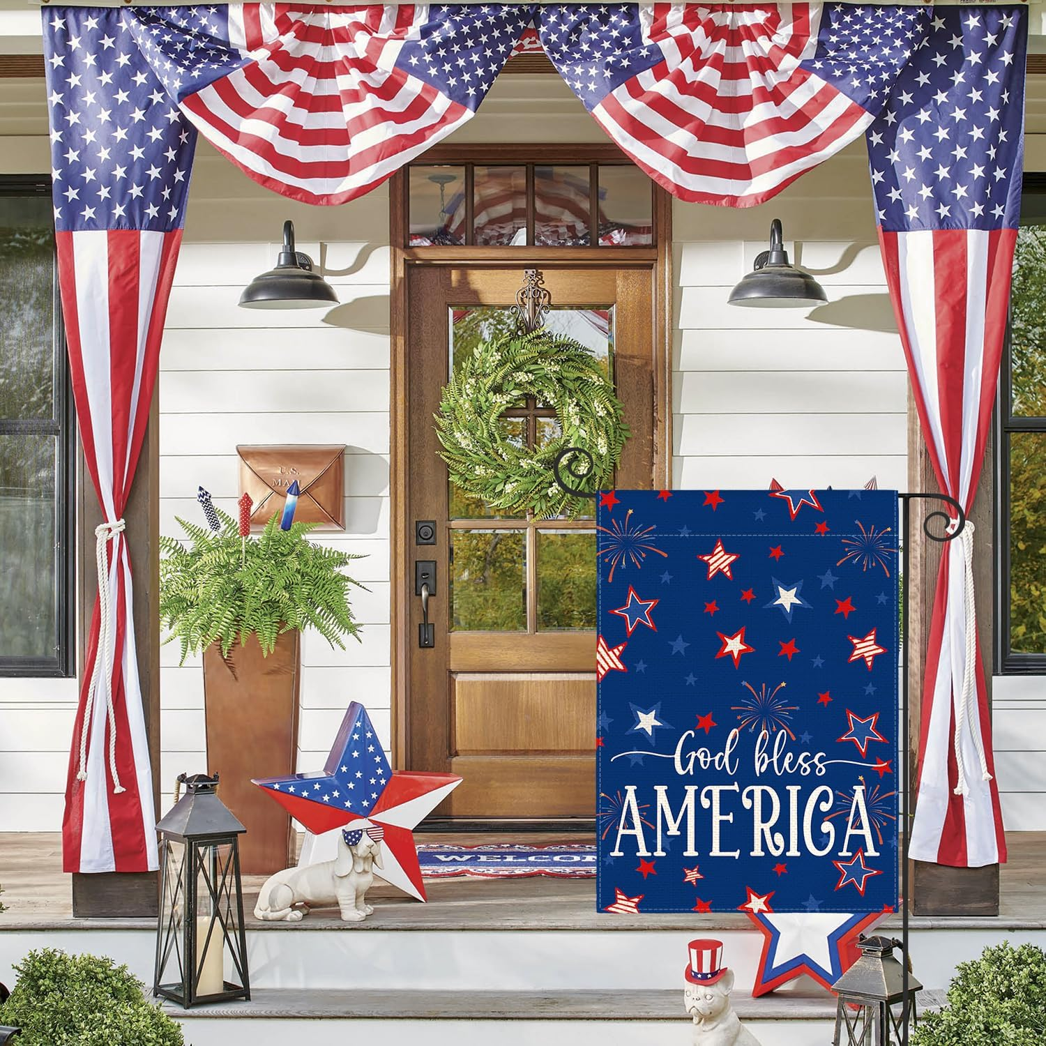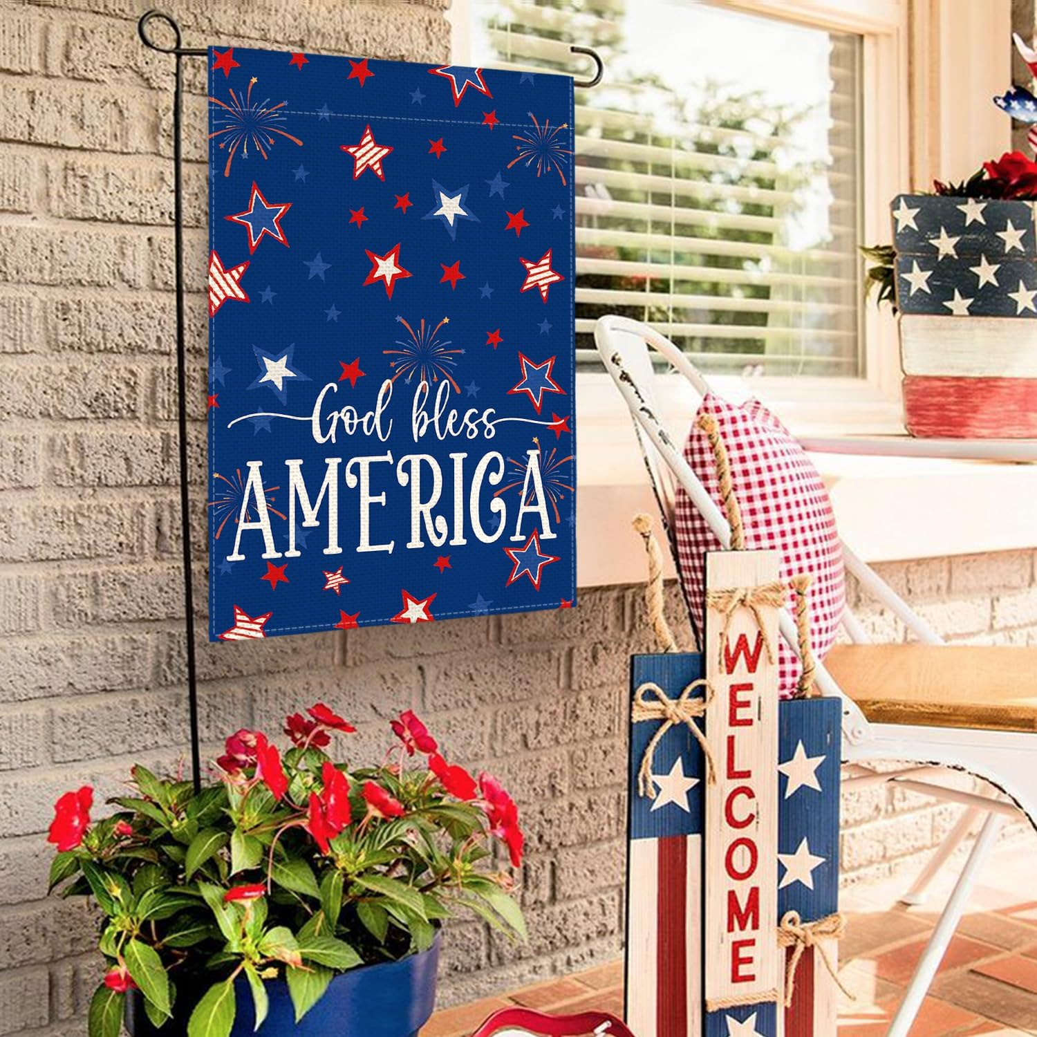 This patriotic garden flag is a fantastic way to show your American pride! The double-sided design looks vibrant, and the durable spun polyester holds up well outdoors. Perfect for 4th of July or year-round, it adds a festive touch to any yard. The stitching is strong, and the colors stay bright even after washing. A great buy for anyone who loves patriotic decor!