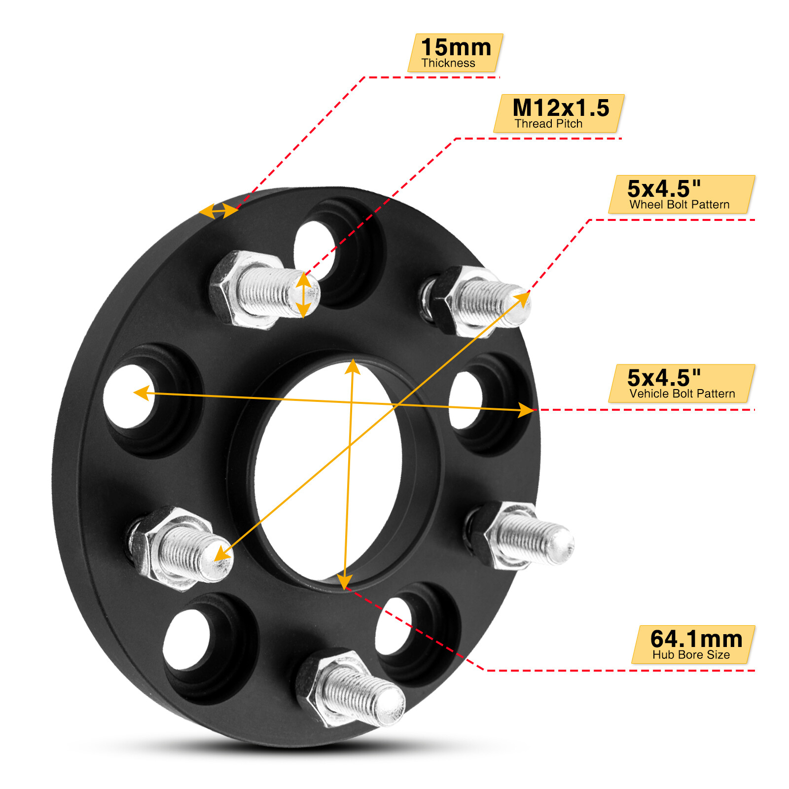 Benefit of wheel spacers: Imporve Better Handling and Increases the Traction,Solves the Adjustment Problems Our hub-centric design offers exceptional stability and safety, offer maximal protection during use Forged from 6061-T6 aircraft-grade aluminum,providing more aggressive and safe driving than casting wheel spacers 6061-T6 Aluminum for Maximum Hardening and Tensile Strength The design of hubcentric with lips more fit for the vehicle hub,reducing vibration at high speeds Good looking on your vehicle and move your wheels further out from the wheel hub allow for larger tire installation to the vehicle Specifications Please Make Sure You Take The Proper Measurements Before Purchasing: Spacer Width: 15mm each side Quantity: 4 Pieces Bolt Pattern: 5x114.3 to 5x114.3 (Equivalent to 5x4.5" inch) Center Bore: 64.1mm Thread Pitch: 12x1.5 Spacer Type: Hub Centric w/Hub Lip Fitments: For acura 2001-2003 For acura CL 2006-2011 For acura CSX 2013-2021 For acura ILX 2001-2006&2014-2016 For acura MDX 2007-2021 For acura RDX 1997-2004 For acura RL 2002-2006 For acura RSX 1996-2008 For acura TL 2015-2020 For acura TLX 2004-2014 For acura TSX For honda 1998-2002 For honda Accord (5 Lug Model Only) 2003-2021 For honda Accord 2006-2021 For honda Civic (Except Type-R) 2012-2015 For honda Crosstour 1997-2021 For honda CR-V 2011-2016 For honda CR-Z 2003-2011 For honda Element 2016-2021 For honda HR-V 2019-2021 For honda Insight 1995-2004 For honda Odyssey 2003-2008 For honda Pilot 1997-2001 For honda Prelude 2000-2009 For honda S2000 (For Rear Wheels ONLY) Description Using high quality aerospace aluminum; Designed to move the wheel further out from the hub; Gives your car a more aggressive stance & allows for better handling characteristics; Fitment, Quality, & Durability tested; Eliminate wheel/tire rubbing instantly; Mount larger wheel or tires; Increase driving stability; Aggresive stance.No special tools required; Extremely fast and easy; Easy as changing a tire; All needed is a lug wrench and jack; Same as changing a tire. NOTE: Please make sure that these are the correct application for your vehicle. We do not guarantee any fitment onto any vehicle,we only guarantee that you will receive the item described as the above. Returns are only accepted if unused and not installed.(ReturnsARE NOT ACCEPTED IF SPACERS-ADAPTERS HAVE BEEN INSTALLED TO YOUR VEHICLE) INSTALLATION TIPS 1.Please Make Sure You Take The Proper Measurements Before Purchasing. 2.Make Sure You Get 5-7 Turns Before Tightening. 3.Suggested To Be Torqued Down By Hand At 85 FT/LBS. 4.The Back Of The Adapter Must Sit Flush On The Hub. Important Installation Notes 1. Make Sure You Get 5-7 Turns Before Tightening 2. Must Be Torqued Down By Hand At 110 FT/LBS. 3. The Back Of The Adapter Must Sit Flush On The Hub 4. No Gap Between The Adapter & Hub. Center The Adapter. 5. Please Make Sure You Take The Proper Measurements Before Purchasing 6. Failure to follow proper procedure may cause your lug nuts to come loose while driving. Benefits 1. Improve Vehicle Stability: 2. Wheel spacers widen your vehicle wheel base, increasing stability, aggressive stance is a free bonus 3. Increase Clearence: 4. Wheel spacers increase tire to frame clearence to allow installation of lift/lowring kits and wider/larger, high traction tires. 5. Hardened CR-Steel Studs: 6. Forged, heat-treated and hardened ISO/DIN 10.9 (SAE Grade 8) wheel bolts deliver strength and corrosion resistance. Tips & Steps 1. Before purchasing, please measure the hub size and flange thickness you need 2. Detailed installation instructions •Clean the rust stains on the back of the hub and the shaft head before installation to ensure the hub surface is smooth •Set the torque range of the torque wrench •Make sure the brake disc does not rotate when using a torque wrench, otherwise the pad installation may become unstable. •After installation, test whether the wheel hub steering will cause friction with the wheel eyebrow. If friction occurs, it means that the flange of this thickness is not suitable for your vehicle. Please replace it in time. •Regularly check the condition of the flange to see if it is loose 3. Risk warning: • Long-term use of the flange installed on the front wheel may cause oil leakage in the steering gear and damage to the wheel bearings and shaft heads. •Failure to install according to the instructions may cause the gasket to become unstable or even break during driving. 4. For some gaskets with a thickness less than 20mm, the original vehicle bolts cannot be used, which will cause incompatibility, and extended bolts must be used. Payment Shipping Return Policy Contact Us Important Points 1) we accepts all major credit cards via PayPal: MasterCard, Visa, American Express and Discover. 2) We will only ship to the confirmed PayPal shipping address given with the payment. Please make sure your PayPal and eBay address is correct. If not, please correct it before payment. Thank you. 3) If you want to ship to another address, please change your PayPal shipping address before you make payment. 4) To avoid initiating an unpaid item claim, please pay within 7 days. 5) Custom duties, taxes, or charges are not included in the cost you pay to us. We only ship this item to United States ! 1. We ship to your eBay address. Each package will be shipped by UPS or Fedex with tracking number. 2. Ship within 1 business day once payment completed. Orders placed on weekend will be shipped within 3 days. 4. Seriously promise: Refund or resend will be offered if item still not arrive in 7-10 business days. Just send us an email ,we will give you a satisfied solution as soon as possible. If you send us an e-mail, it will be answered within 48 hours during our working hours. Please feel free to contact us if you have any questions: Dear my friend,we appreciate your support.And our goal is service you well and give you a pleasant shopping time in our store. ✅Dear customer, when you wa