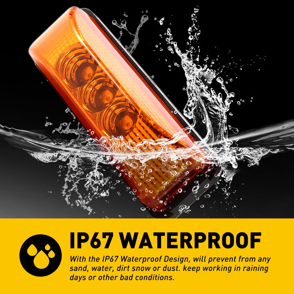 These LED side marker lights are a fantastic upgrade! The bright amber output is super clear, and the upgraded Piranha LEDs provide excellent visibility with a wide angle. They’re waterproof and durable, perfect for trucks, RVs, or trailers. The reflector design boosts light intensity, making them stand out even in low light. Easy to install and built to last—great value for the price!